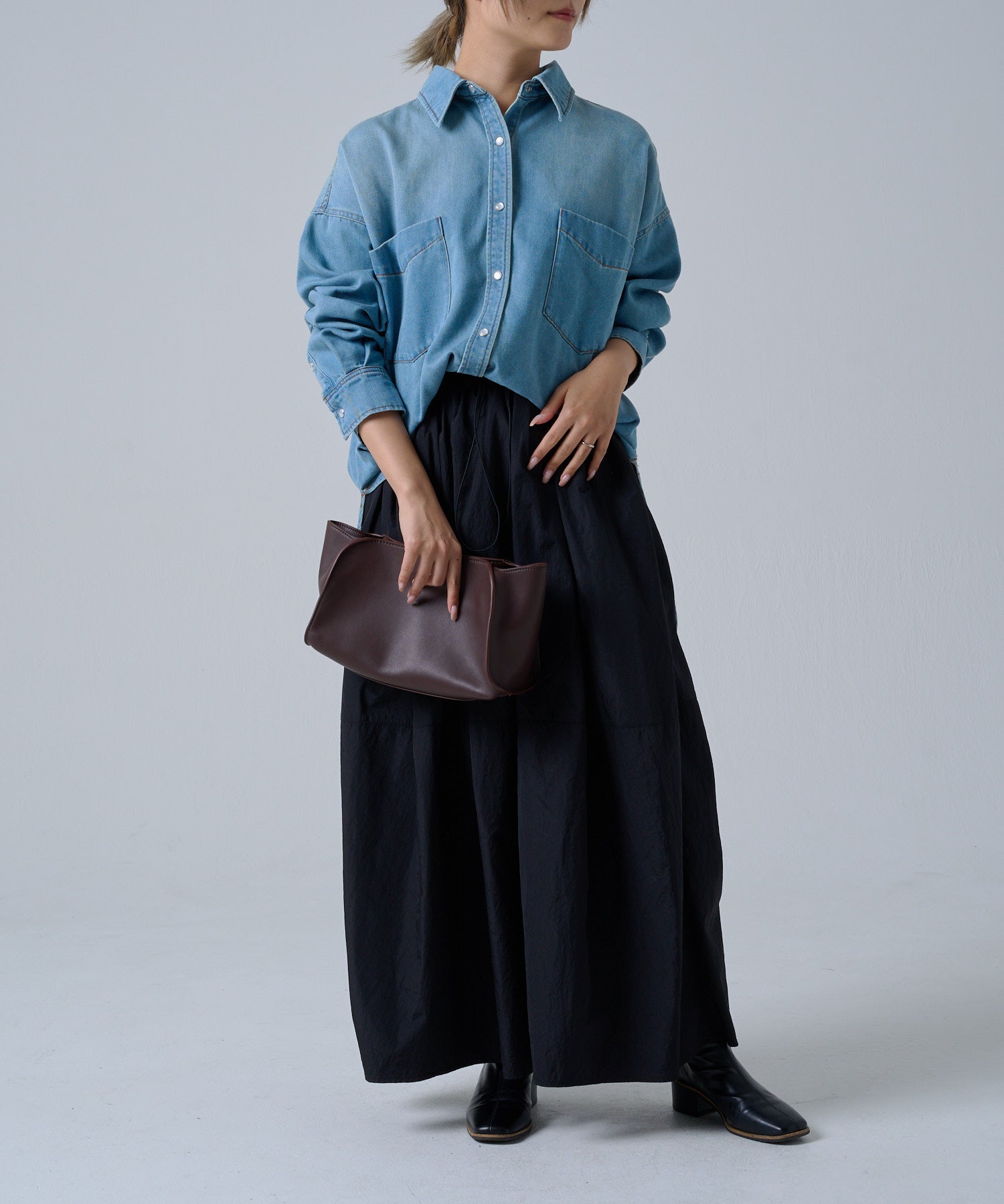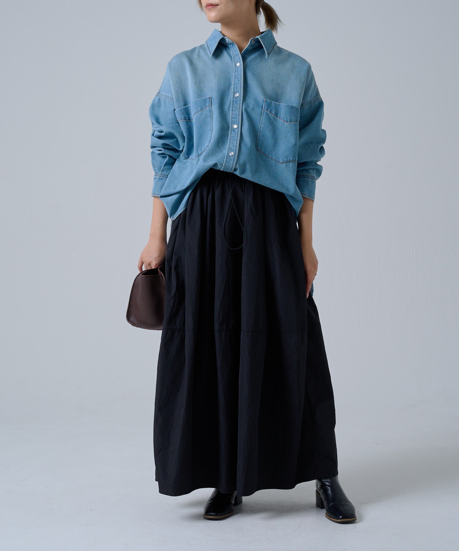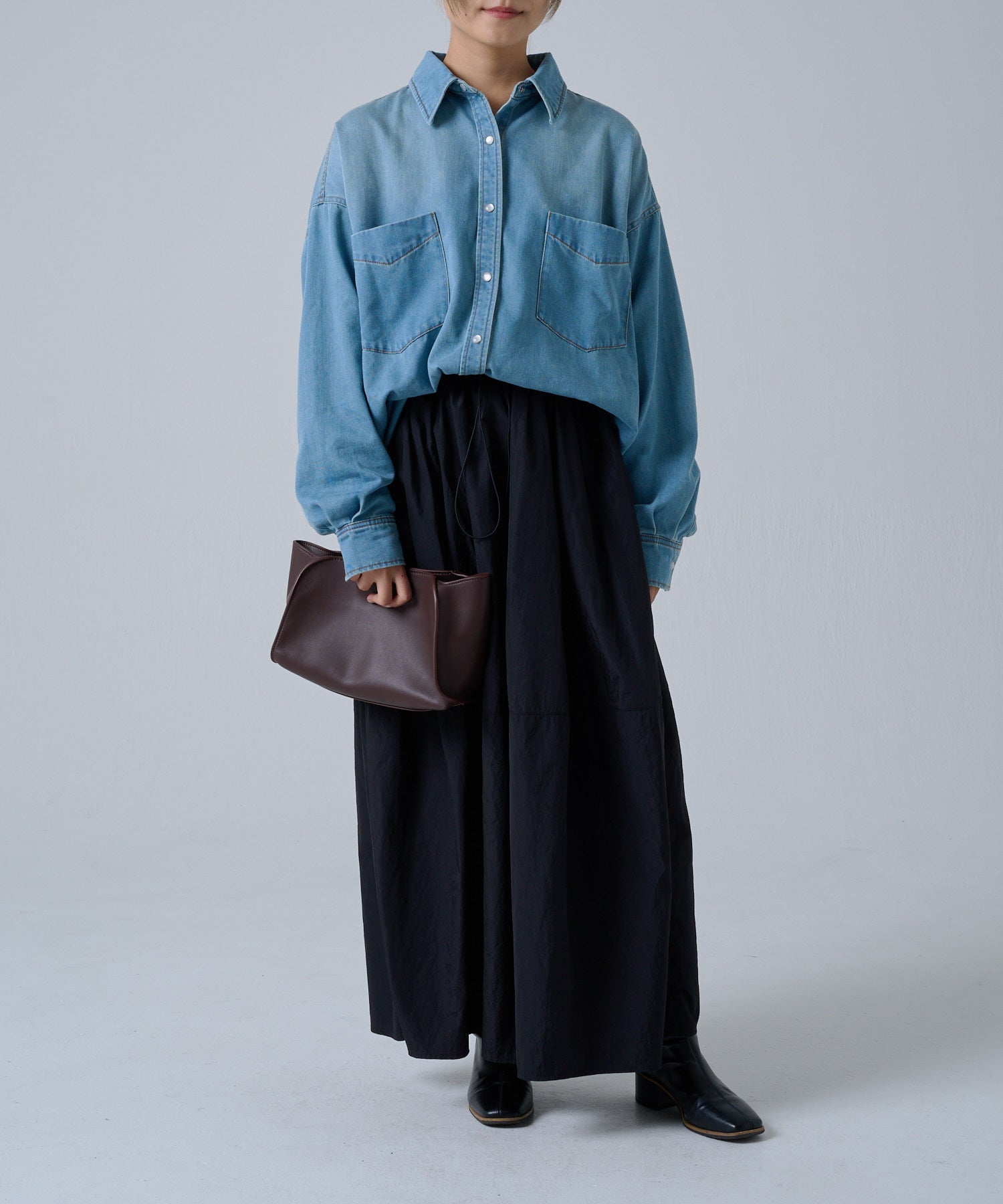 ブラウスと合わせてシックに、カットソーと合わせて抜け感を出すなど、スカートの分量感がありながらも一重仕立てで軽く、シーズンを問わず活躍します。