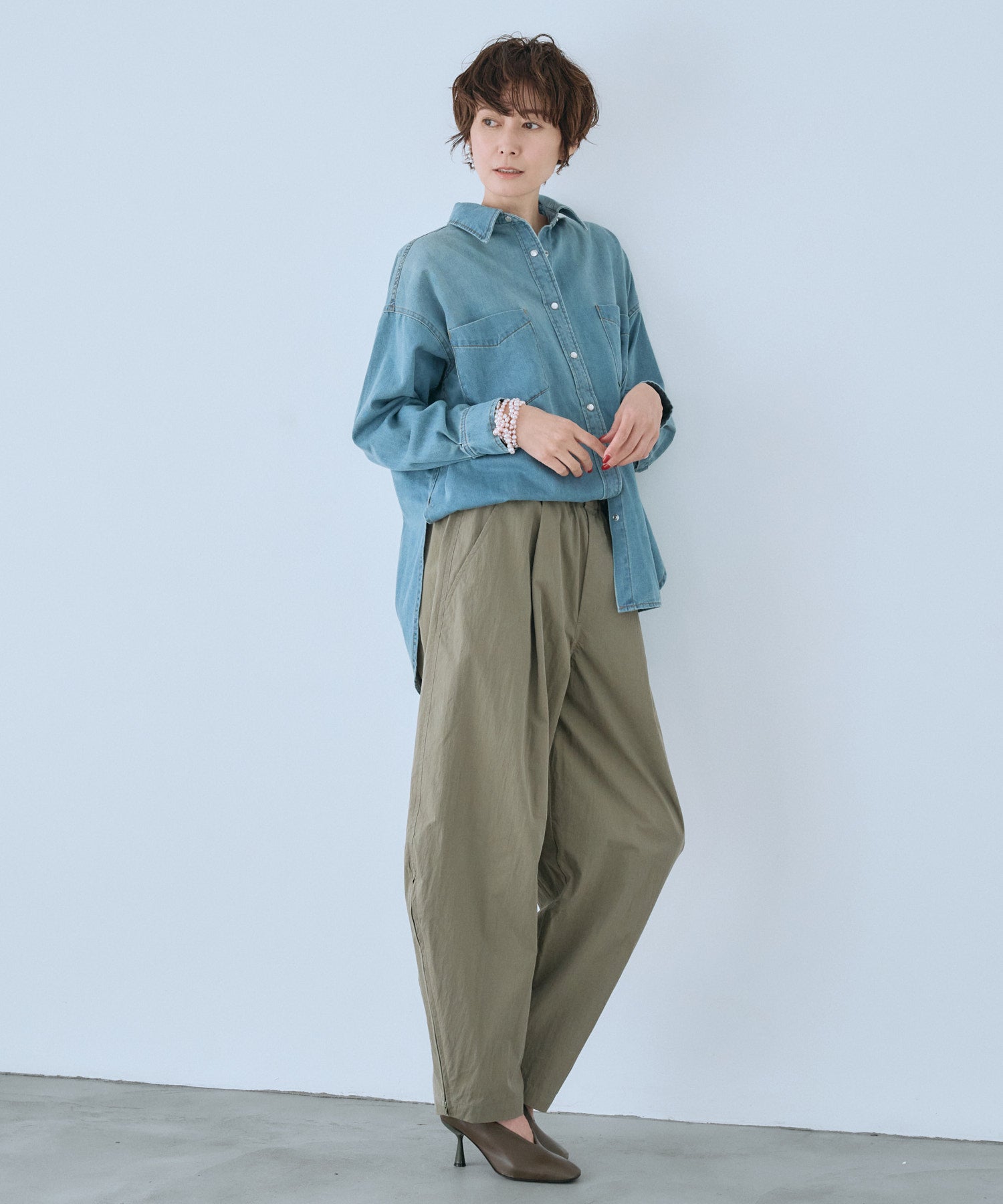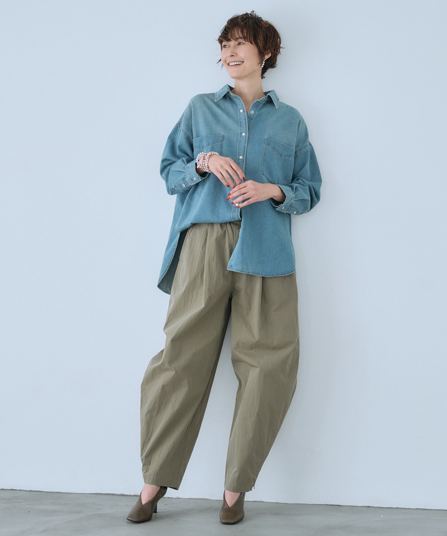 繊細に施したウォッシュドブリーチ加工が、上品で落ち着いた陰影を描き出します。