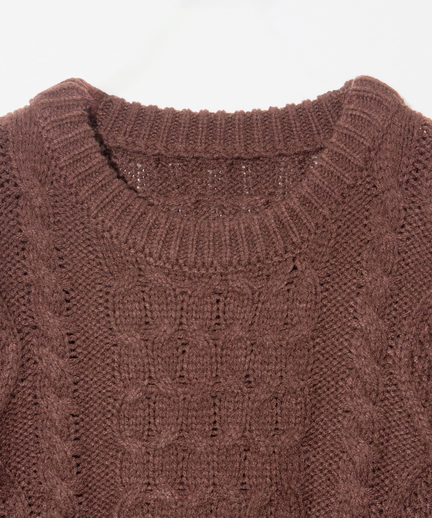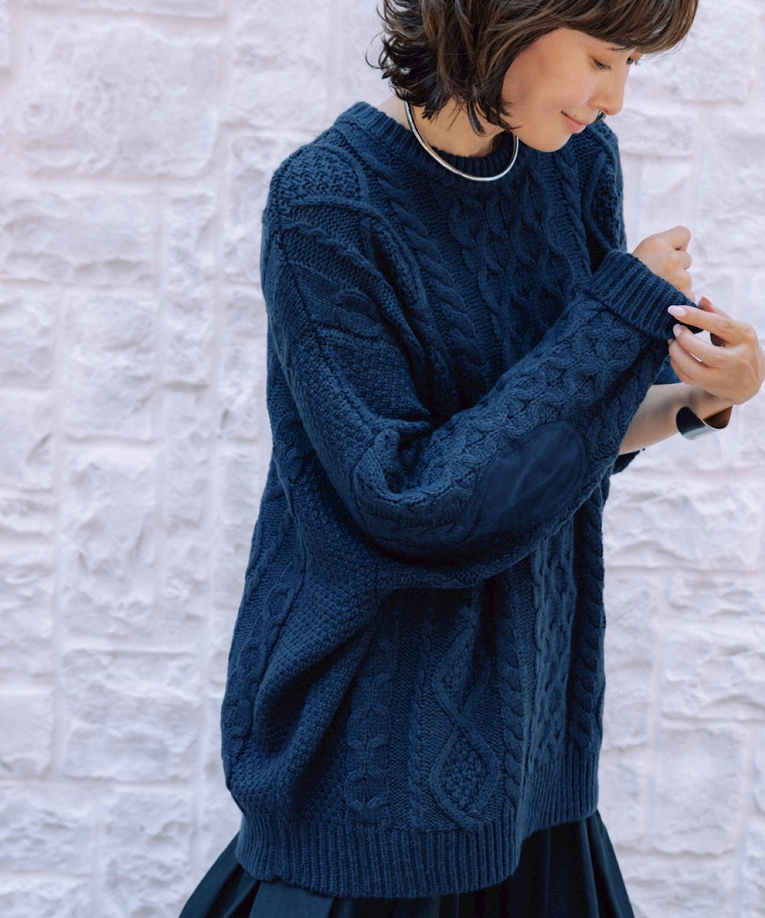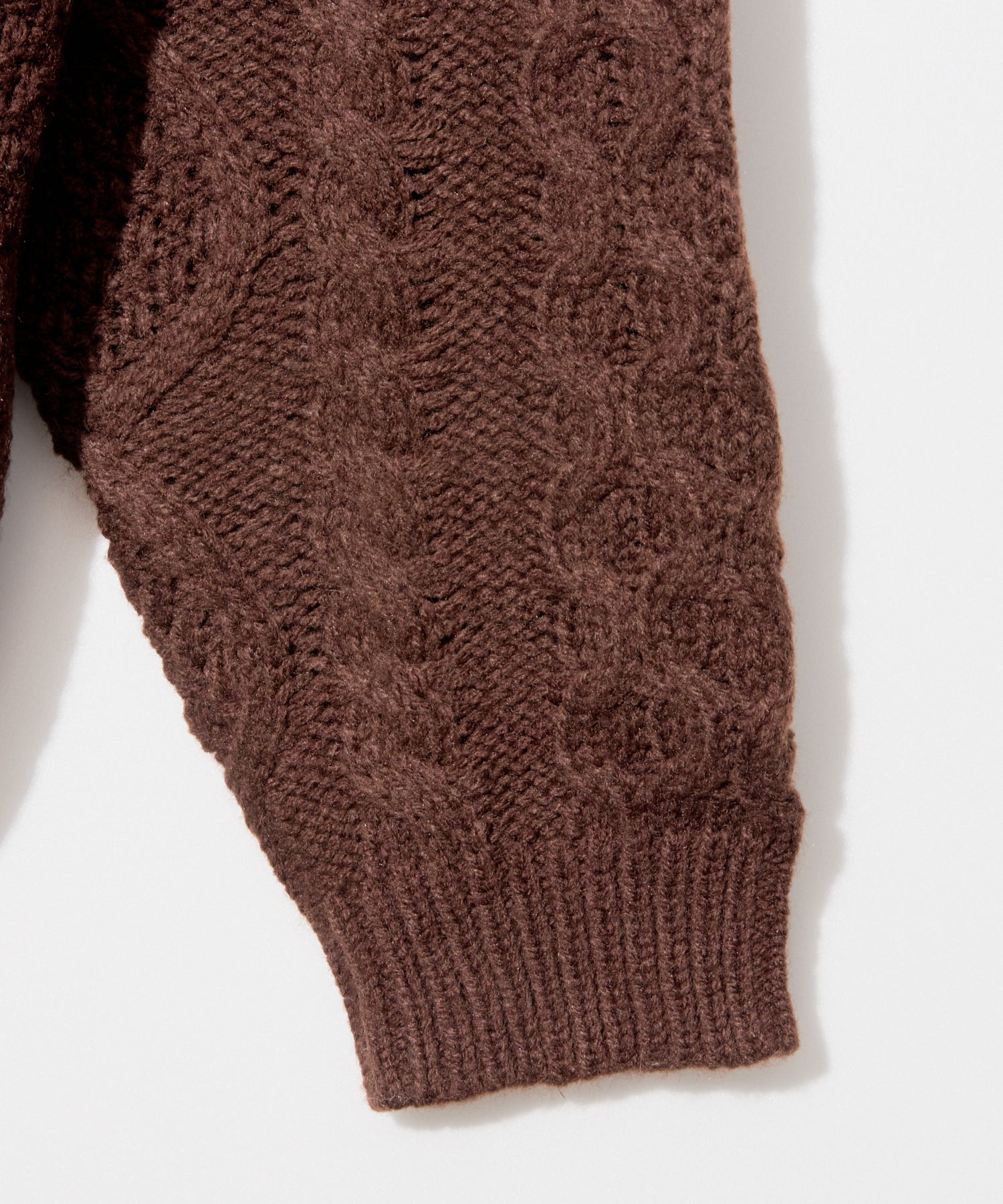 膨らみのある糸で編み立て、ケーブル柄の凹凸を立体的に表現した上質ニット