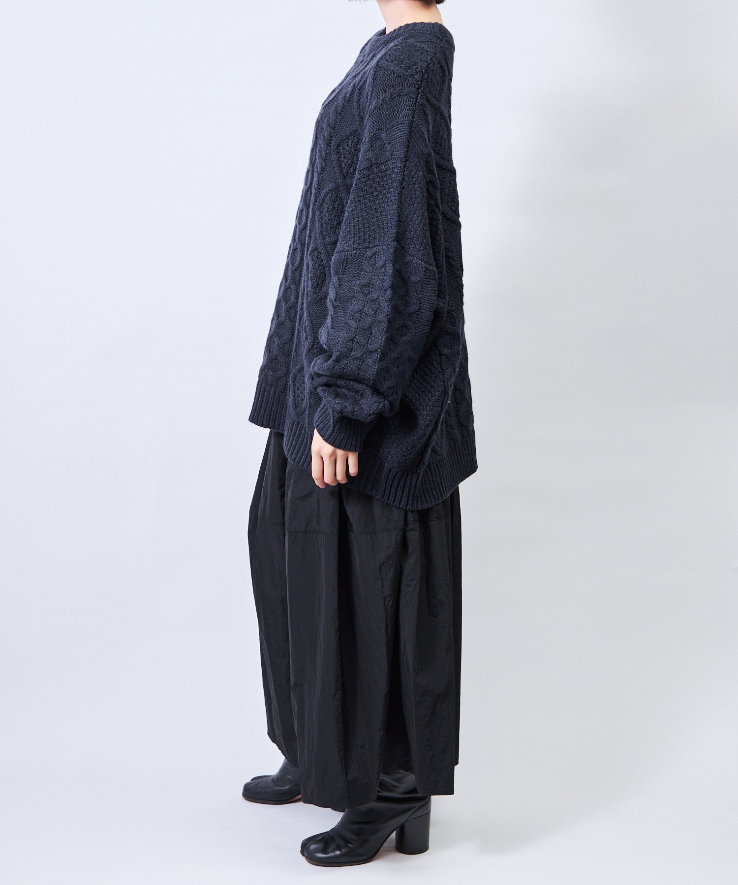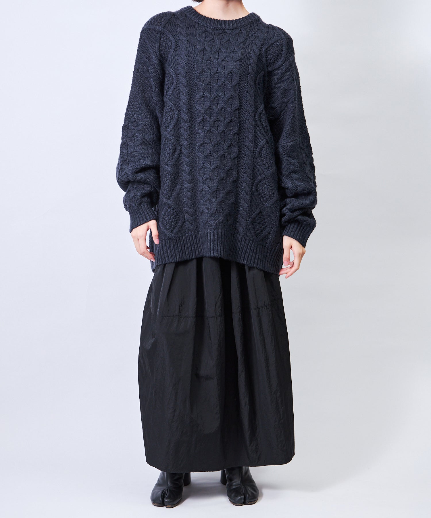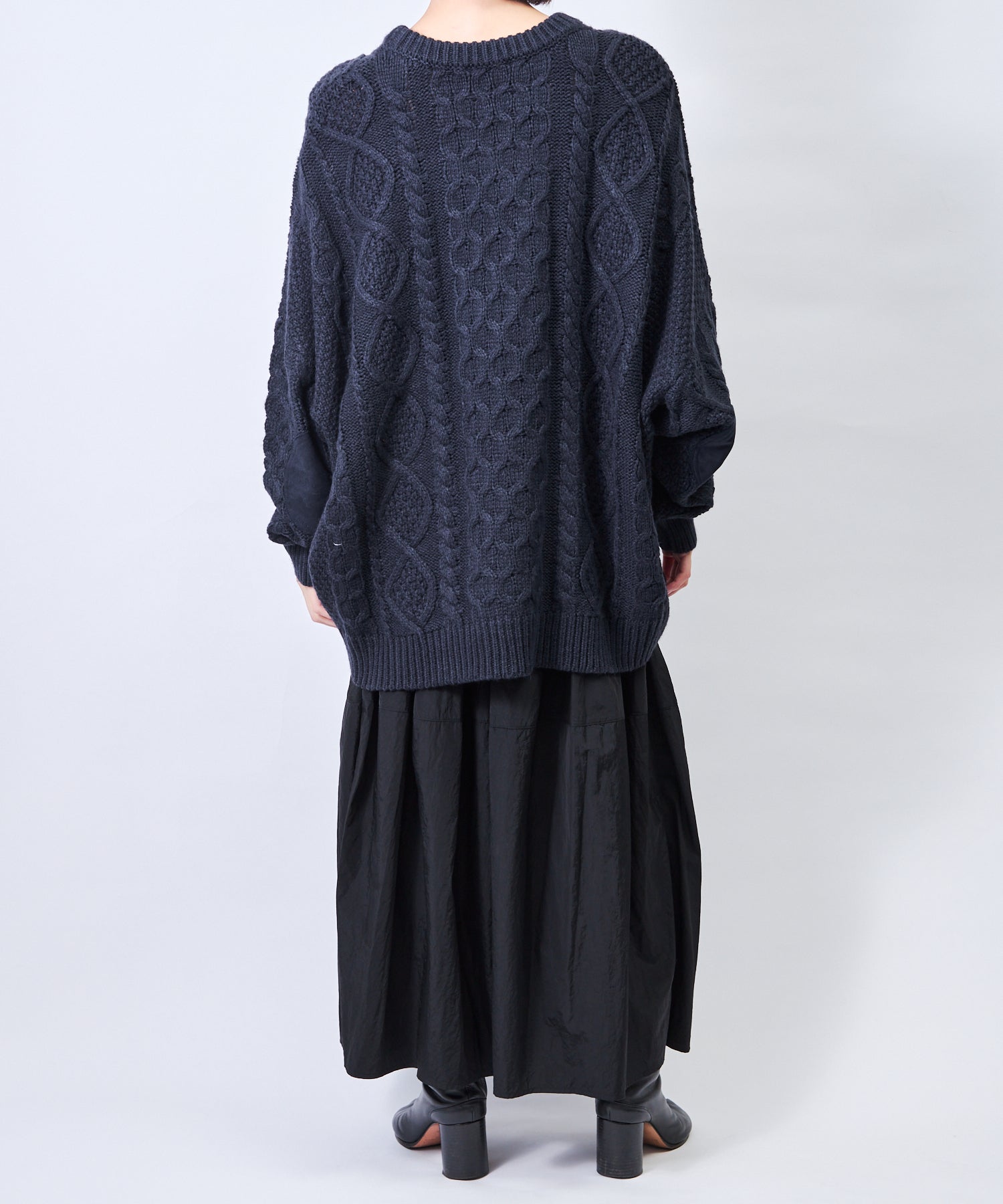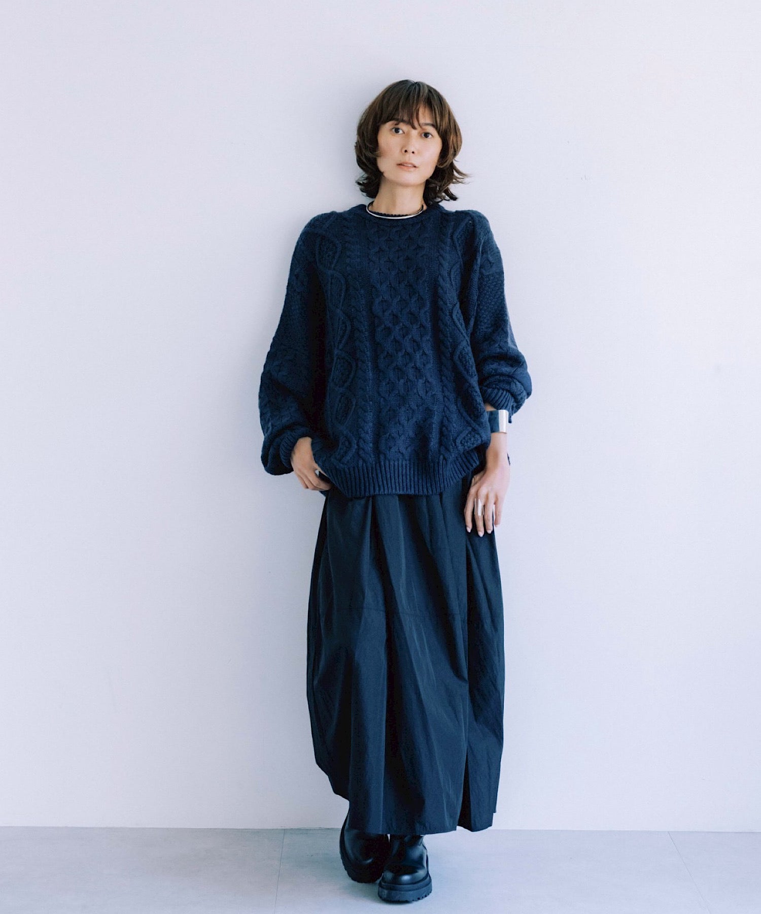 膨らみのある糸で編み立て、ケーブル柄の凹凸を立体的に表現した上質ニット