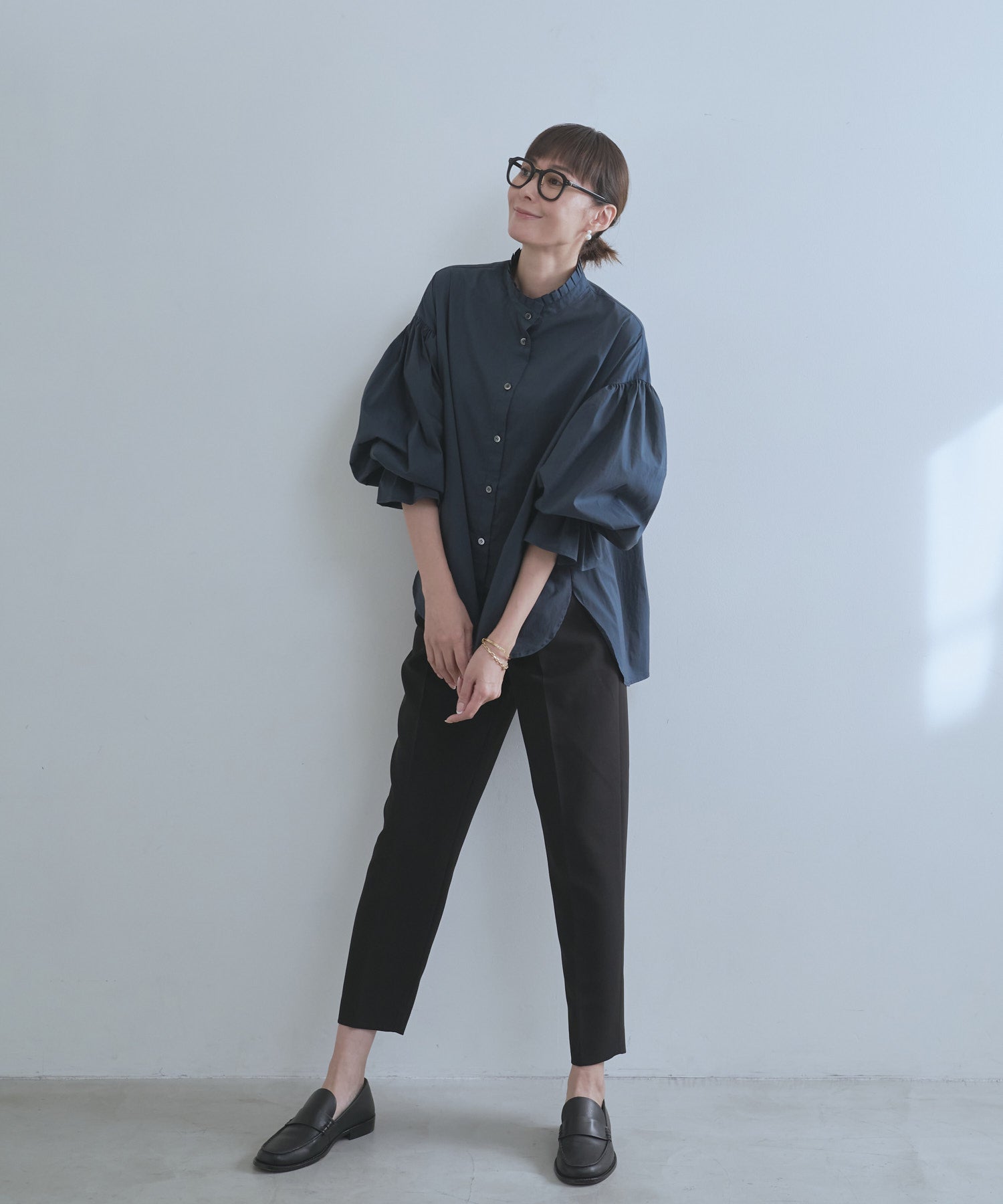 スタンドカラーボリュームスリーブブラウス