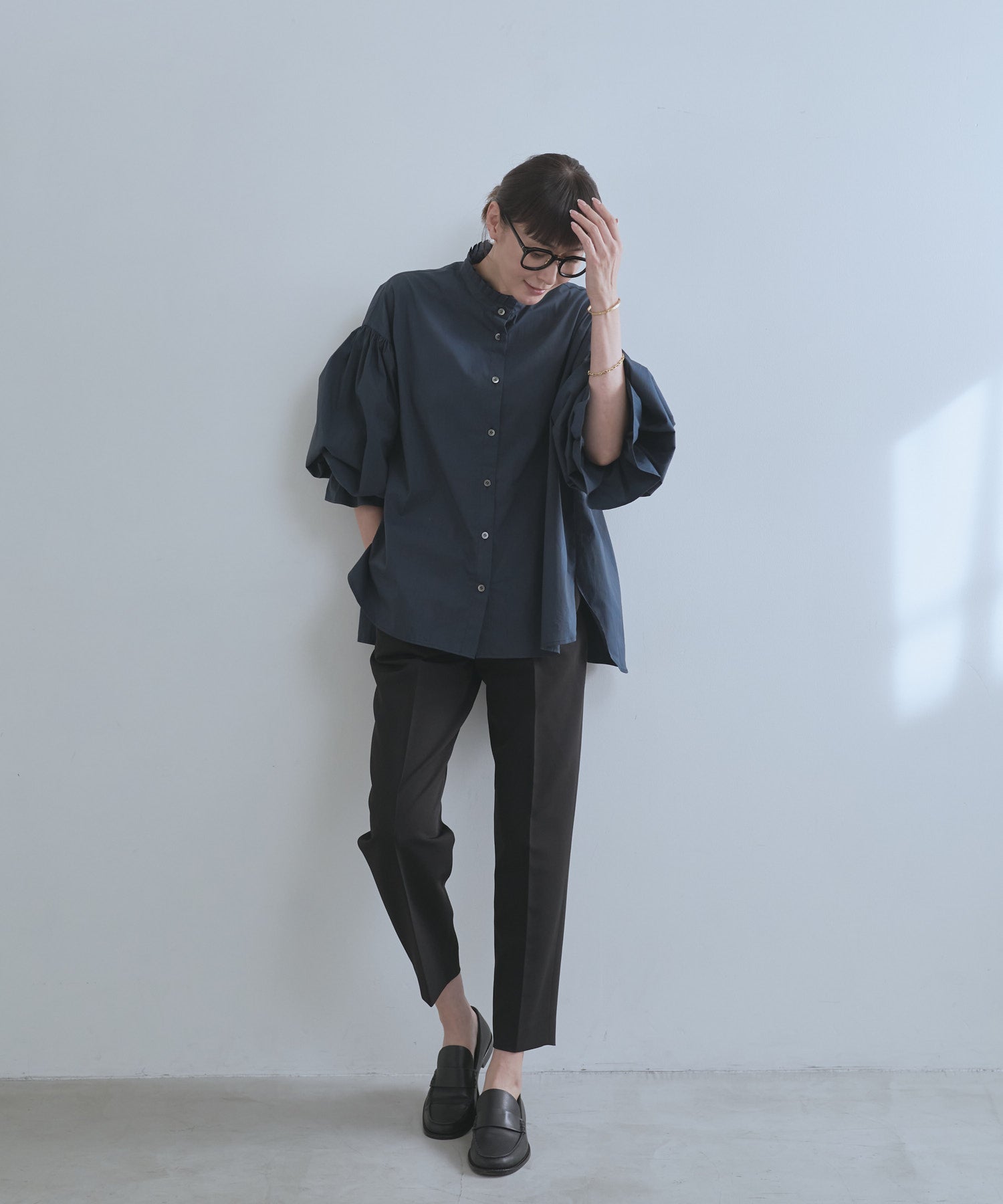 シーンやスタイルに縛られず着回せる万能ブラウスです。