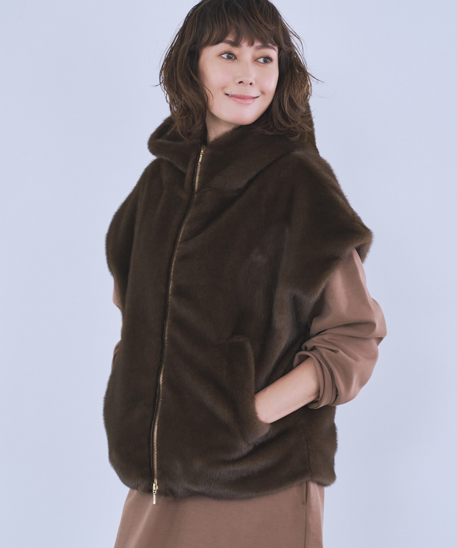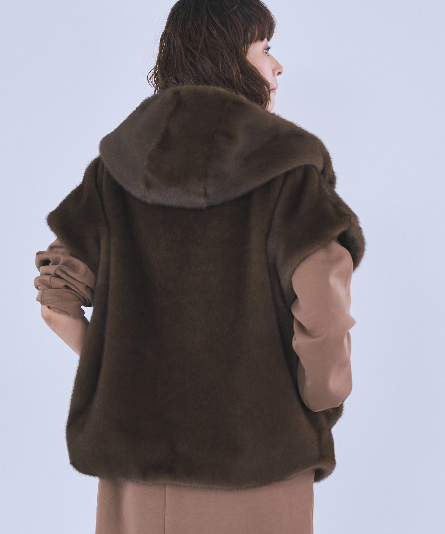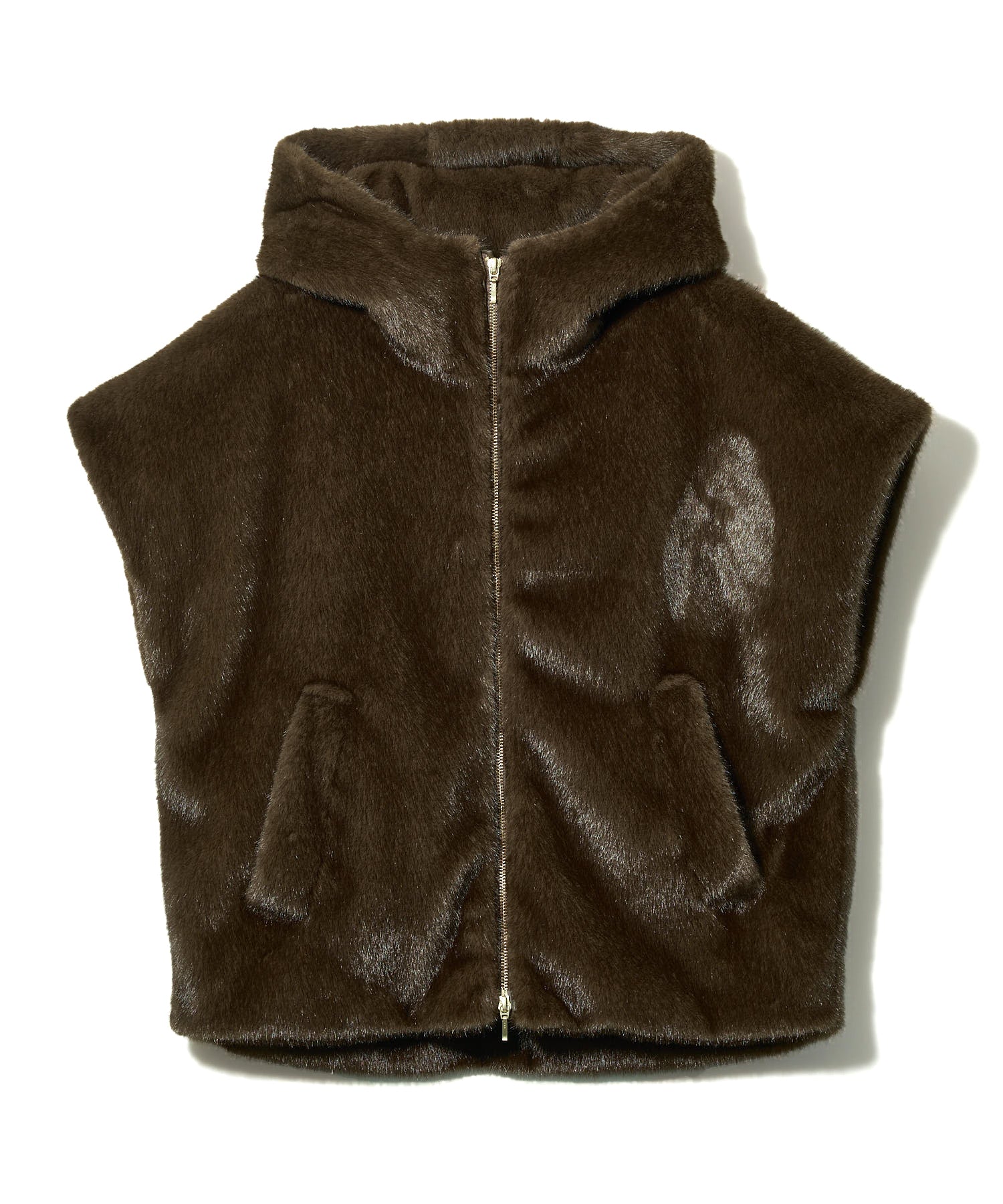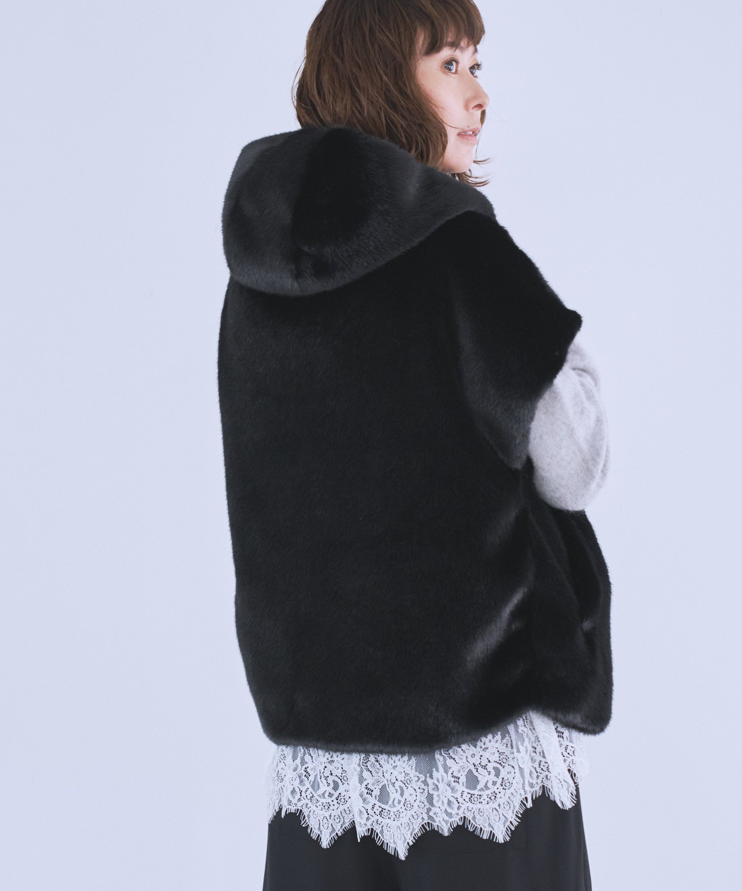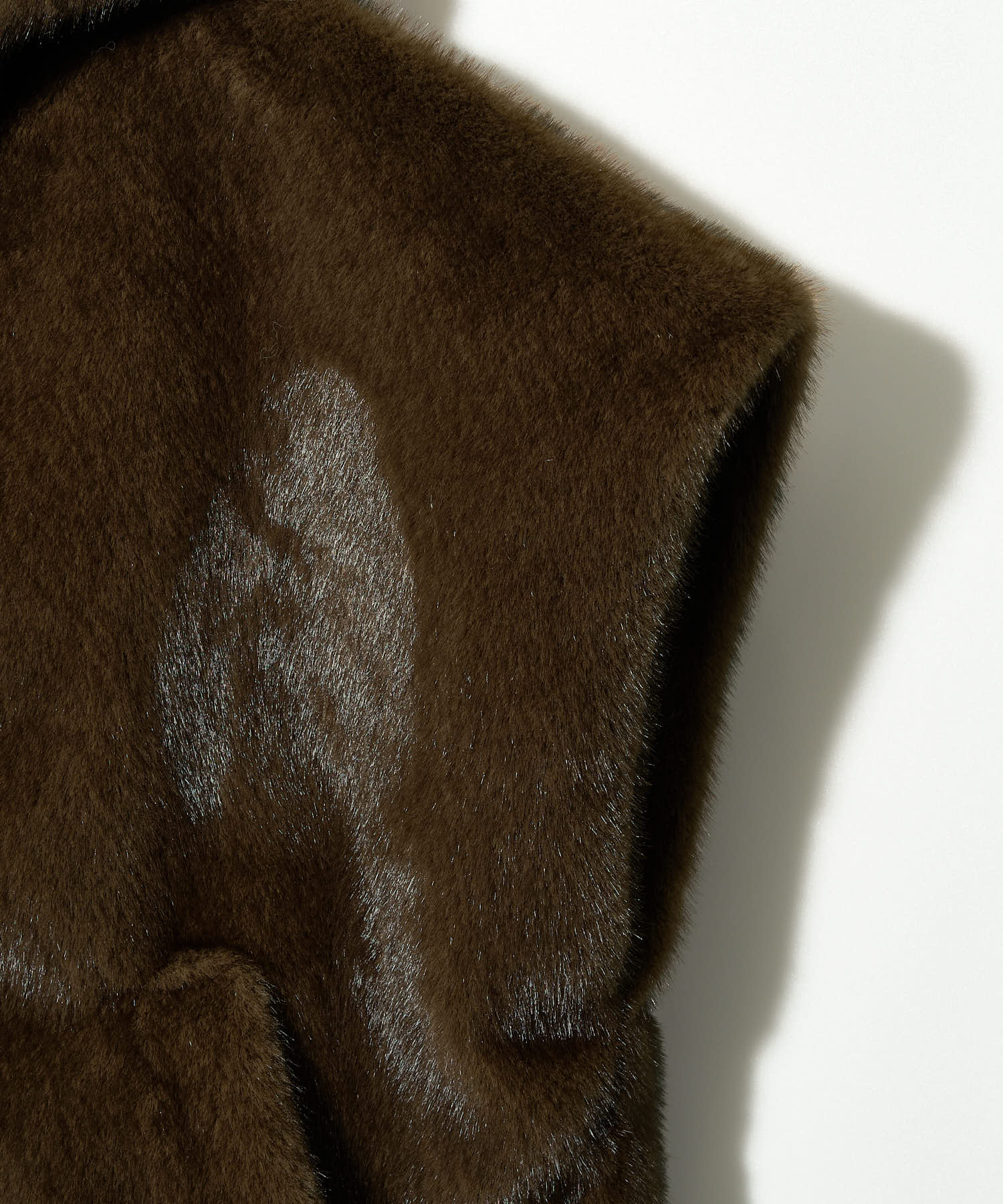 上質な艶感が魅力の《ミンクライクフードベスト》。