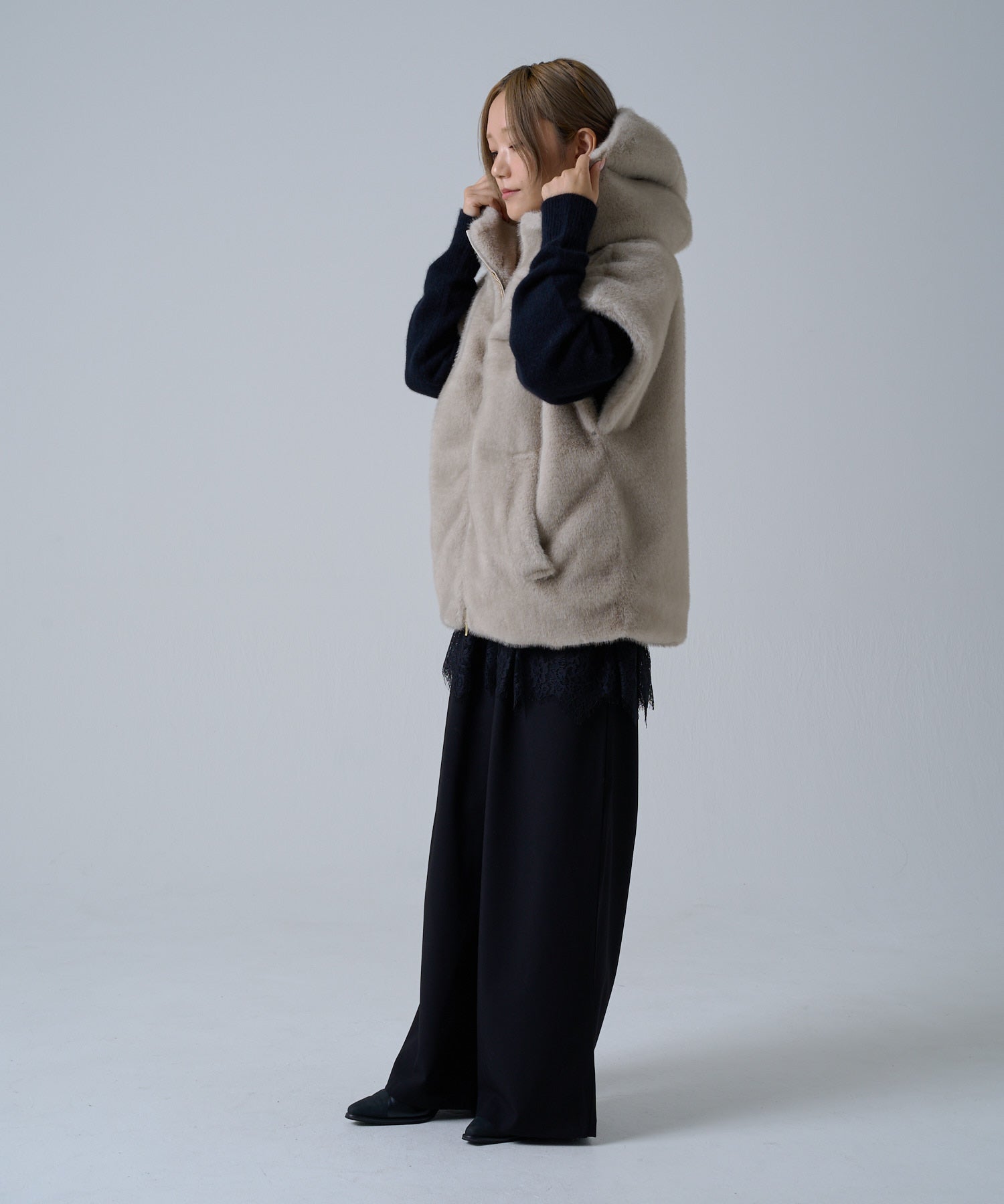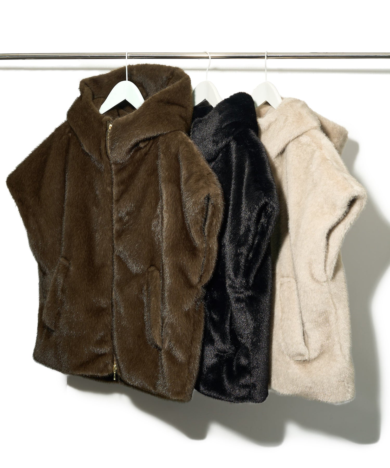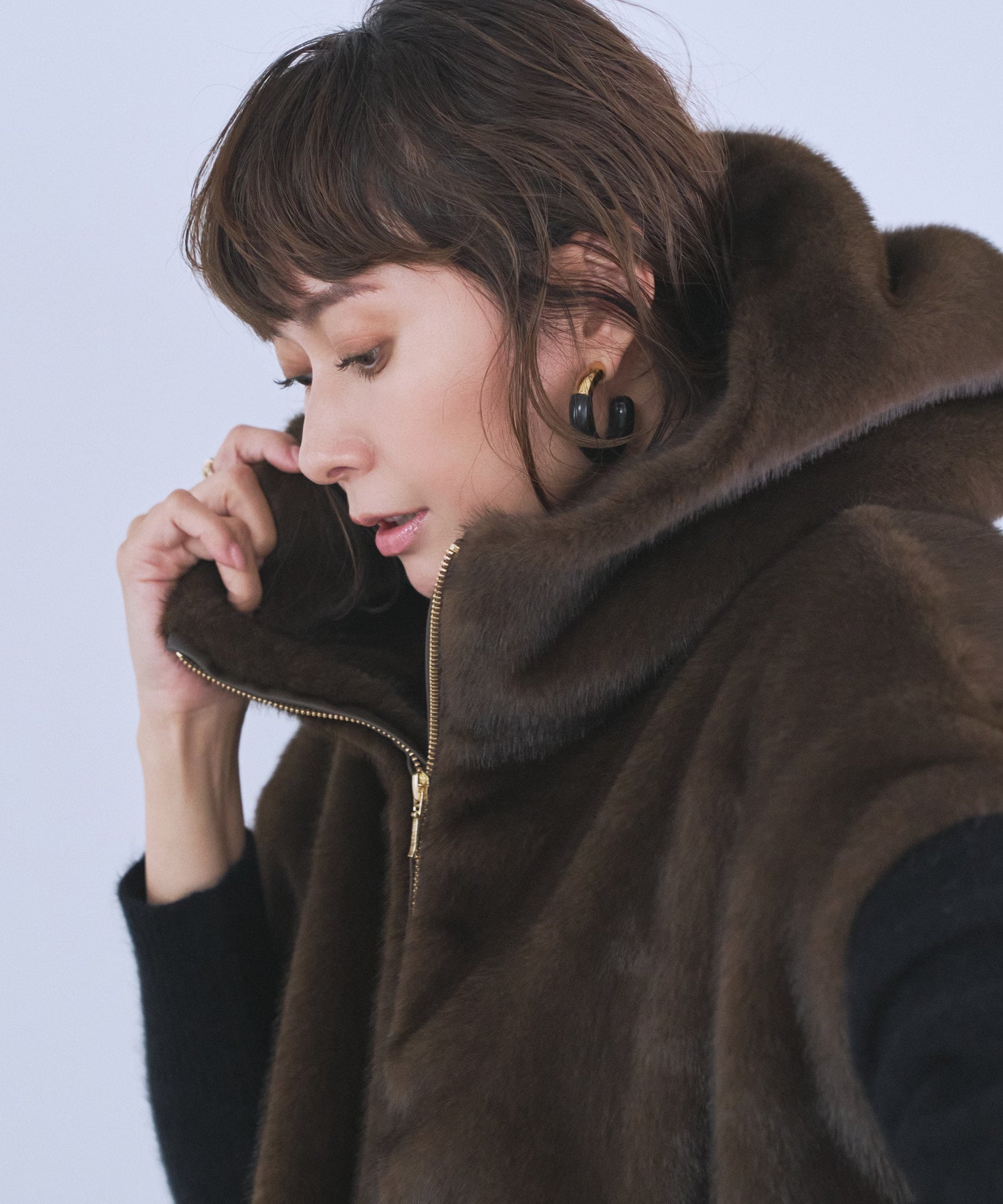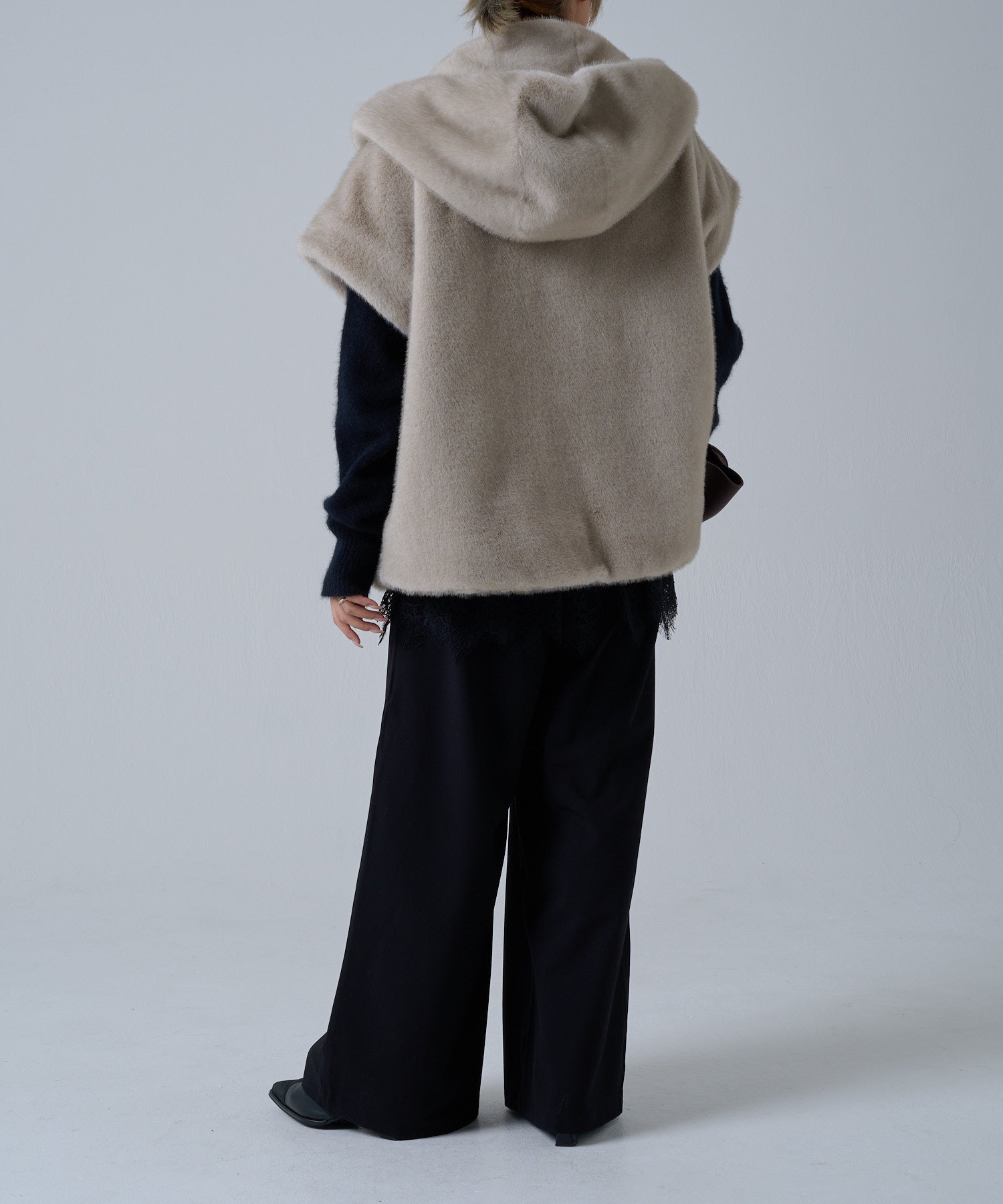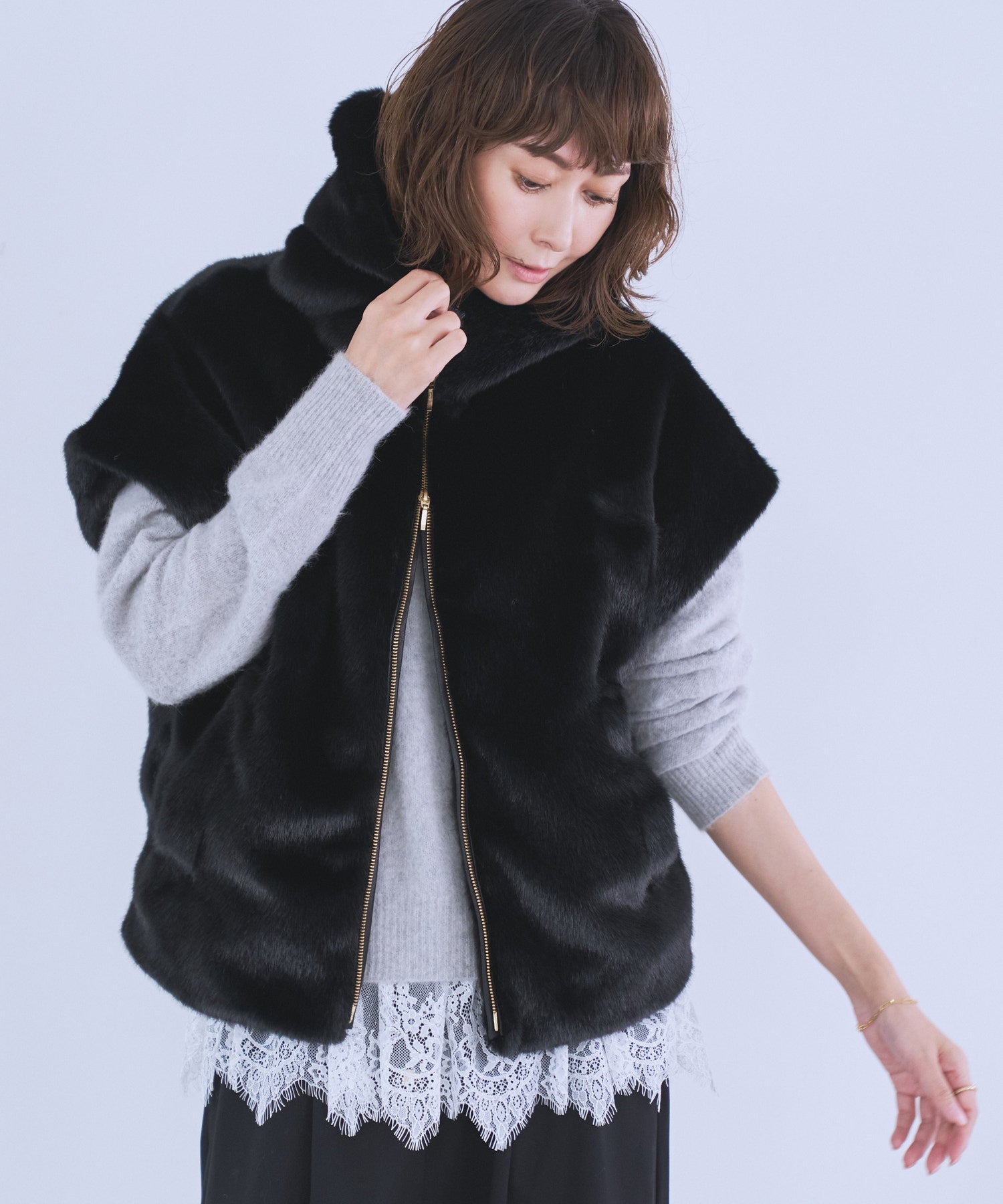 上質な艶感が魅力の《ミンクライクフードベスト》。
