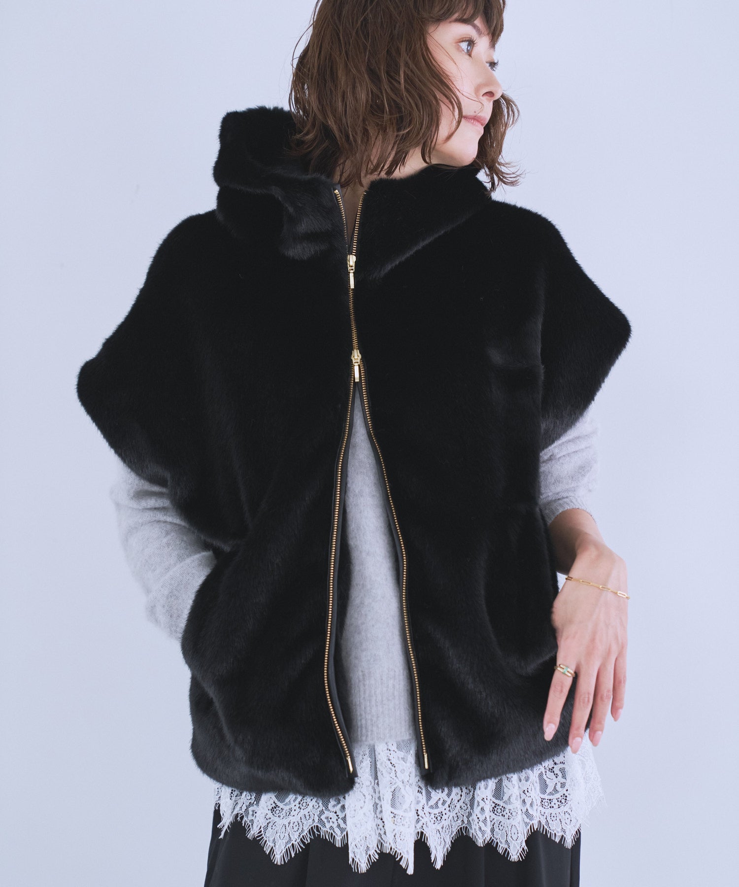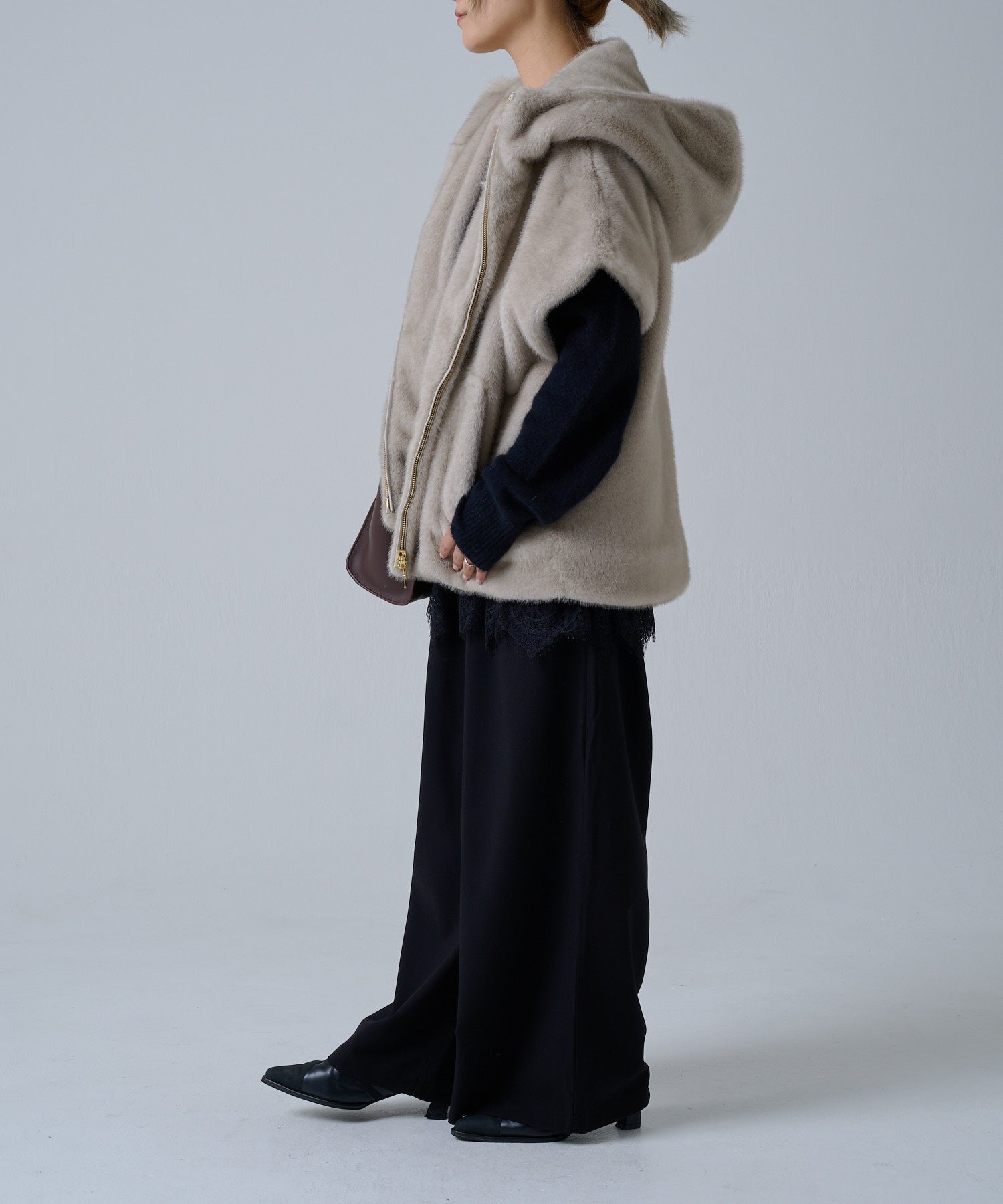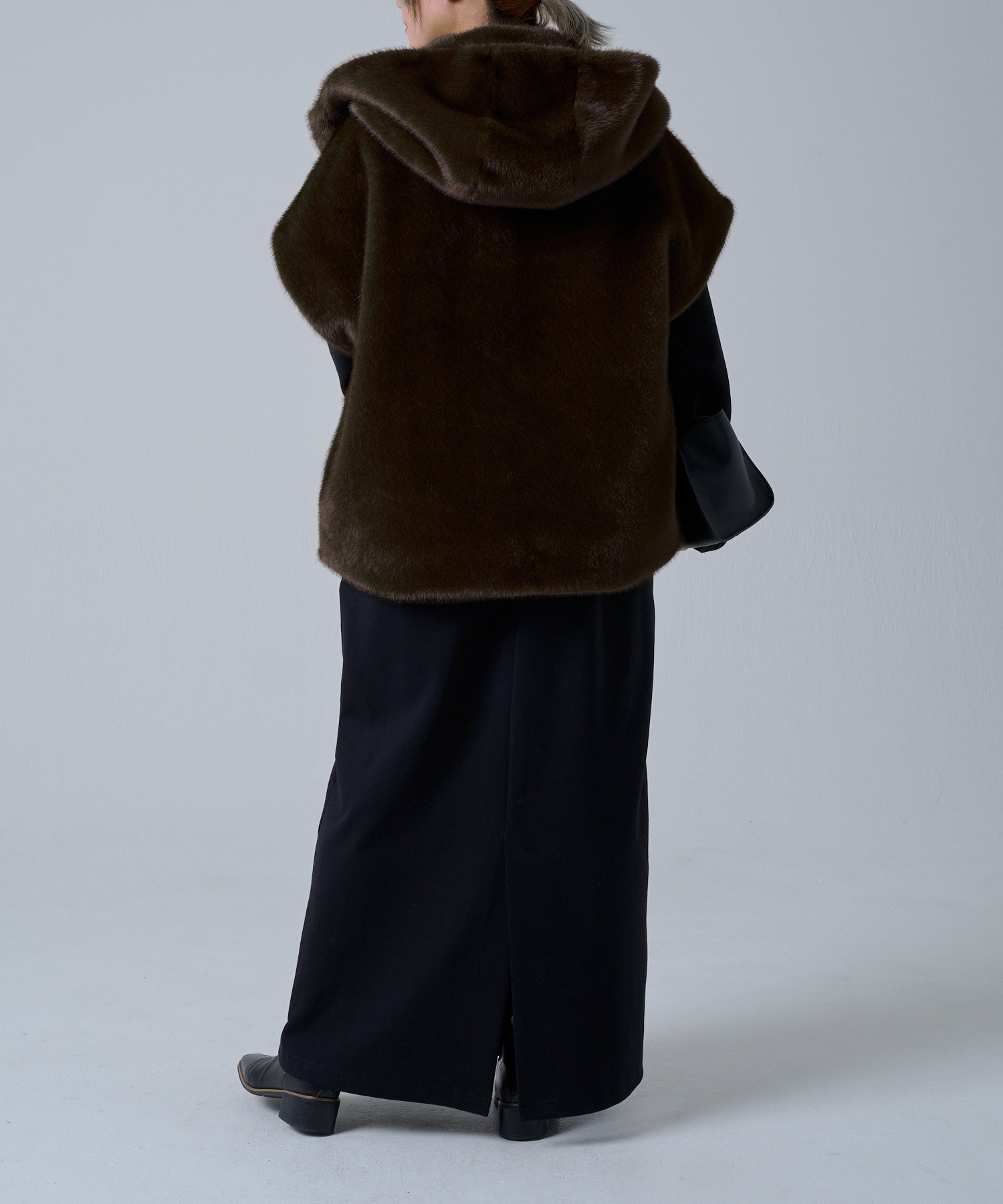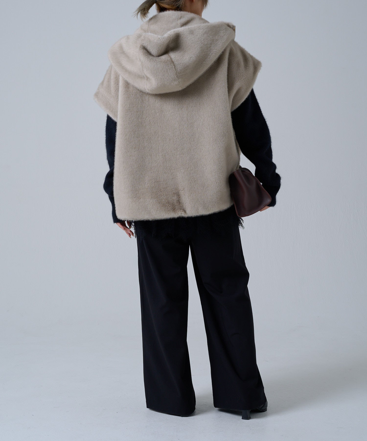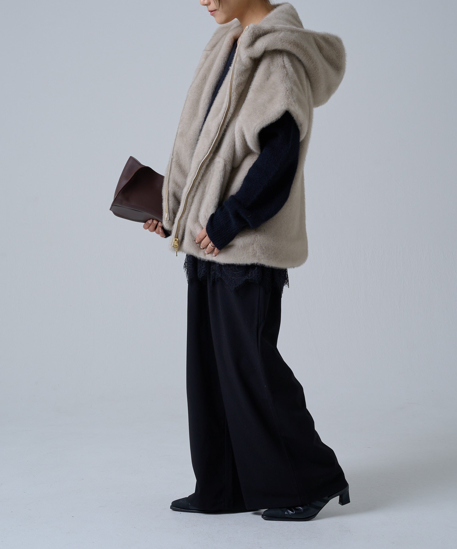 上質な艶感が魅力の《ミンクライクフードベスト》。