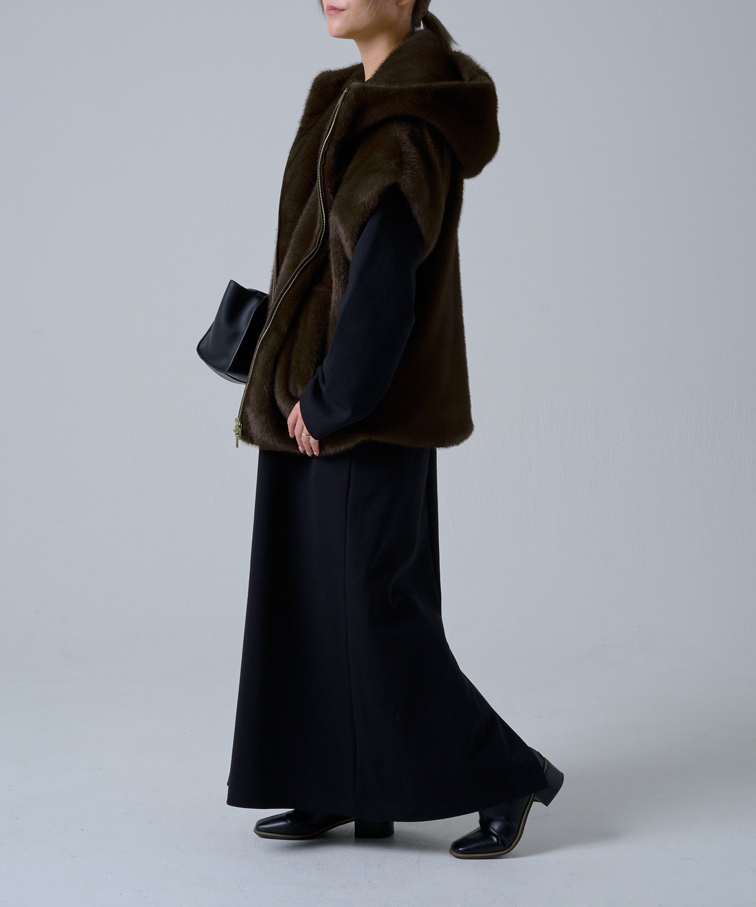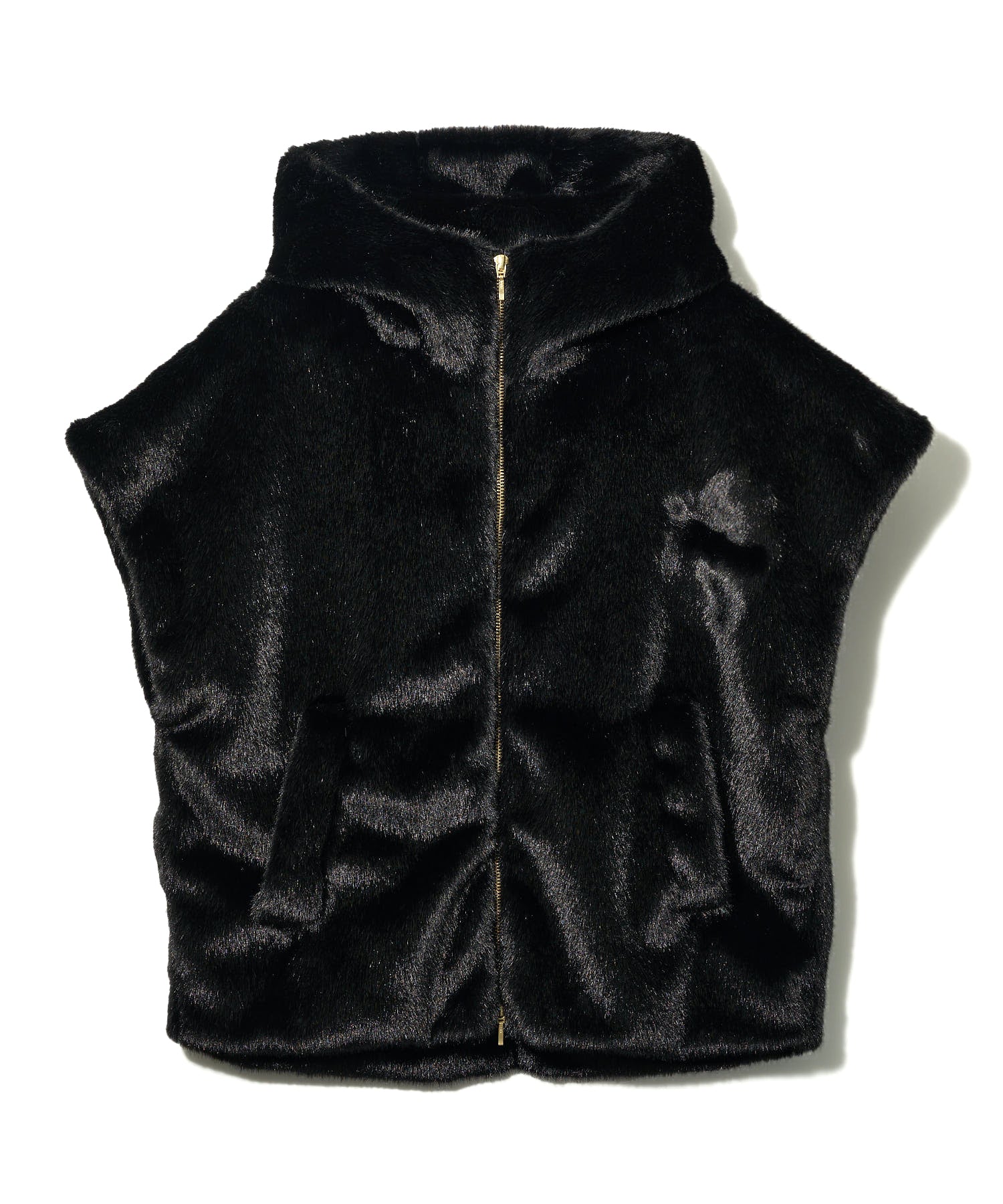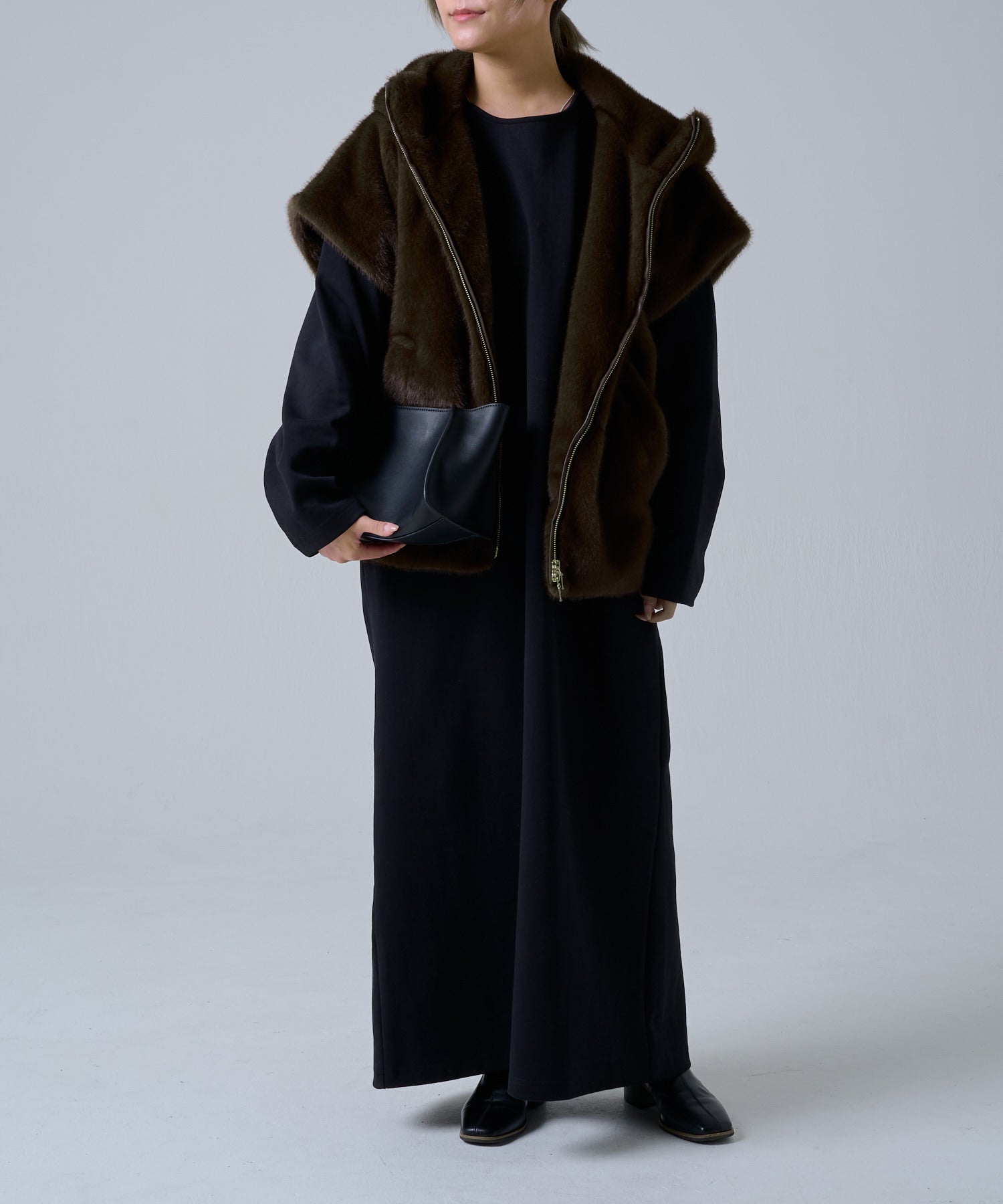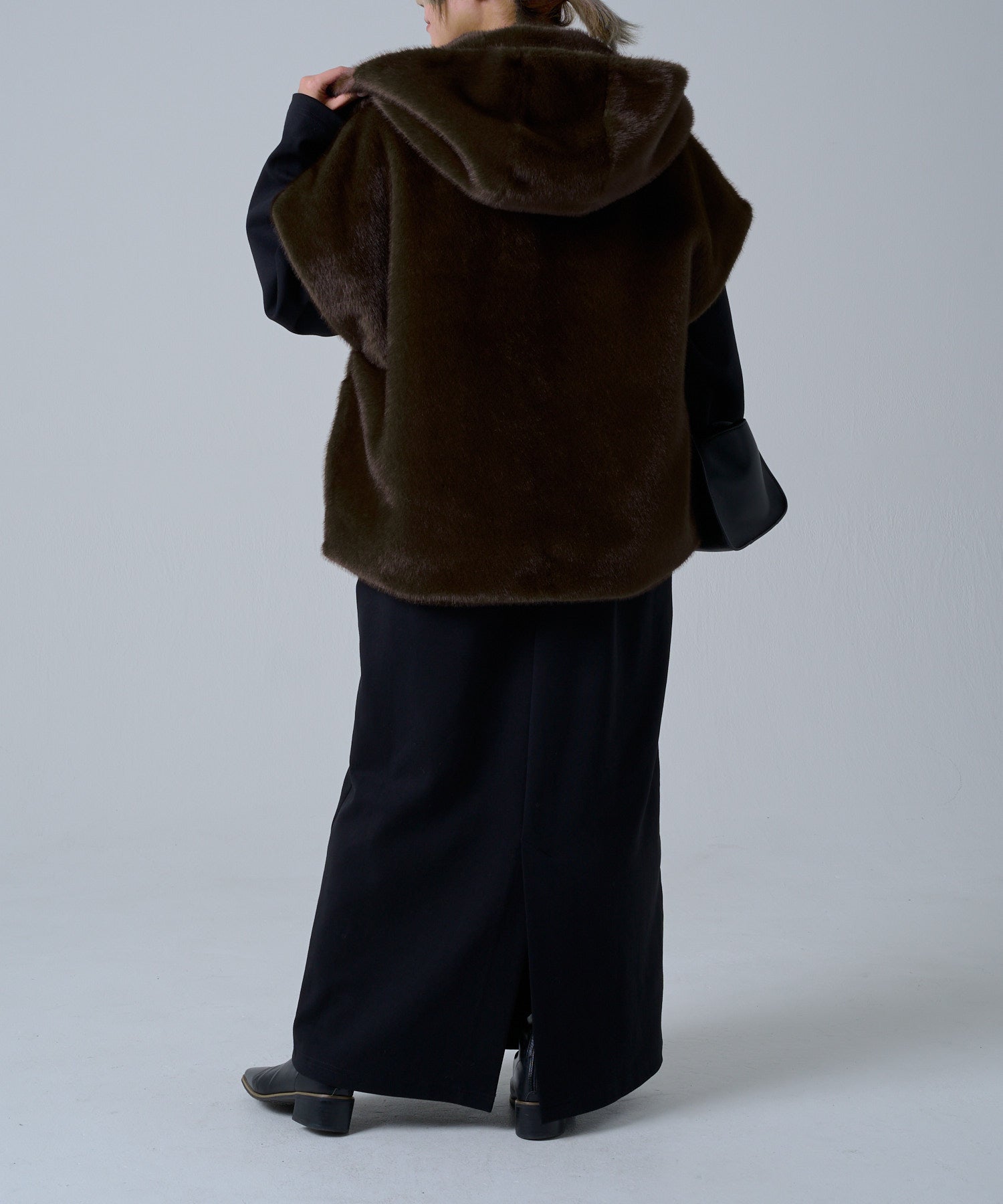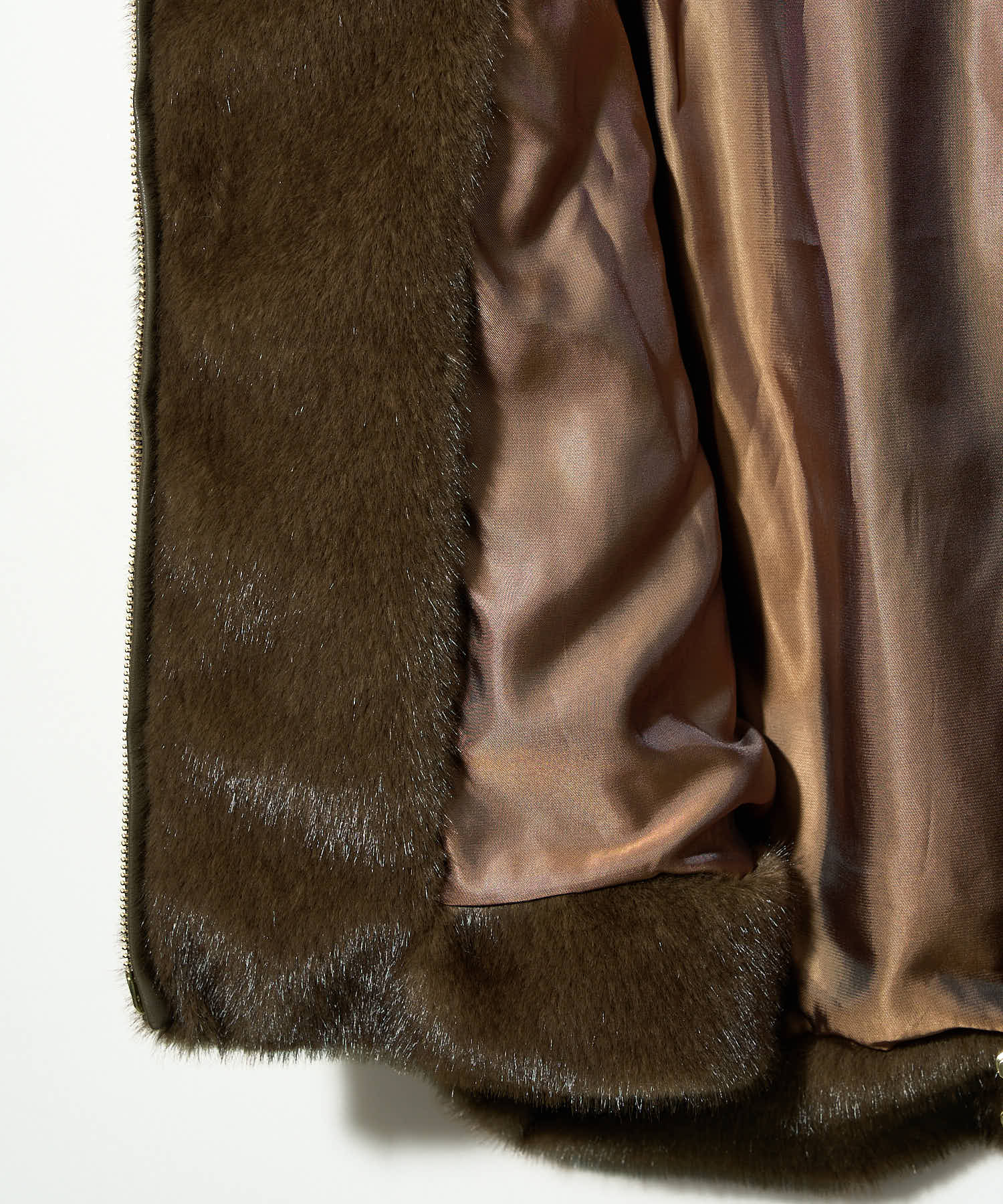 上質な艶感が魅力の《ミンクライクフードベスト》。