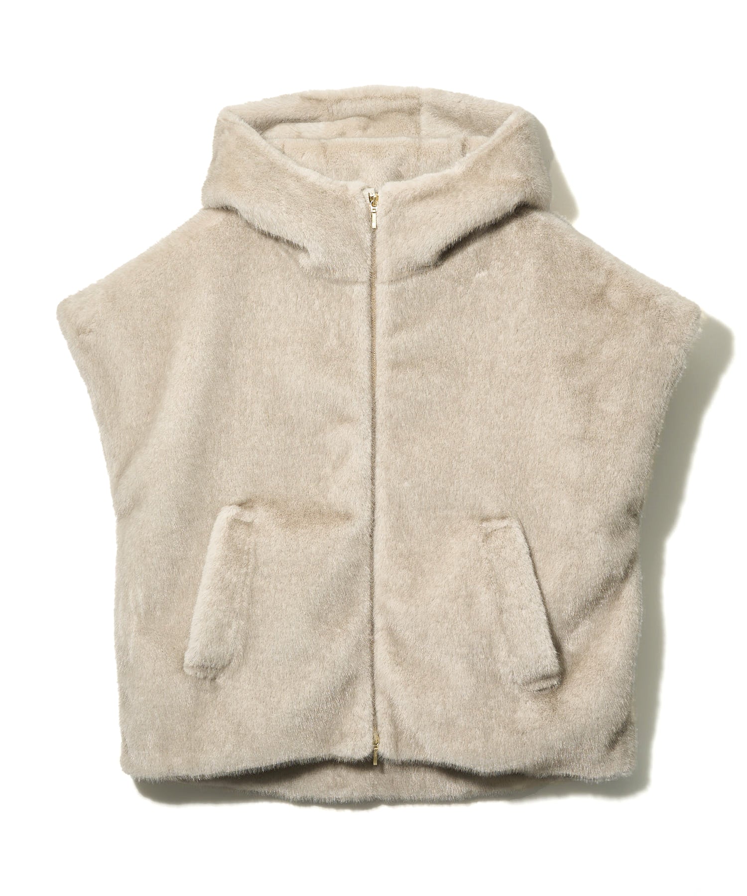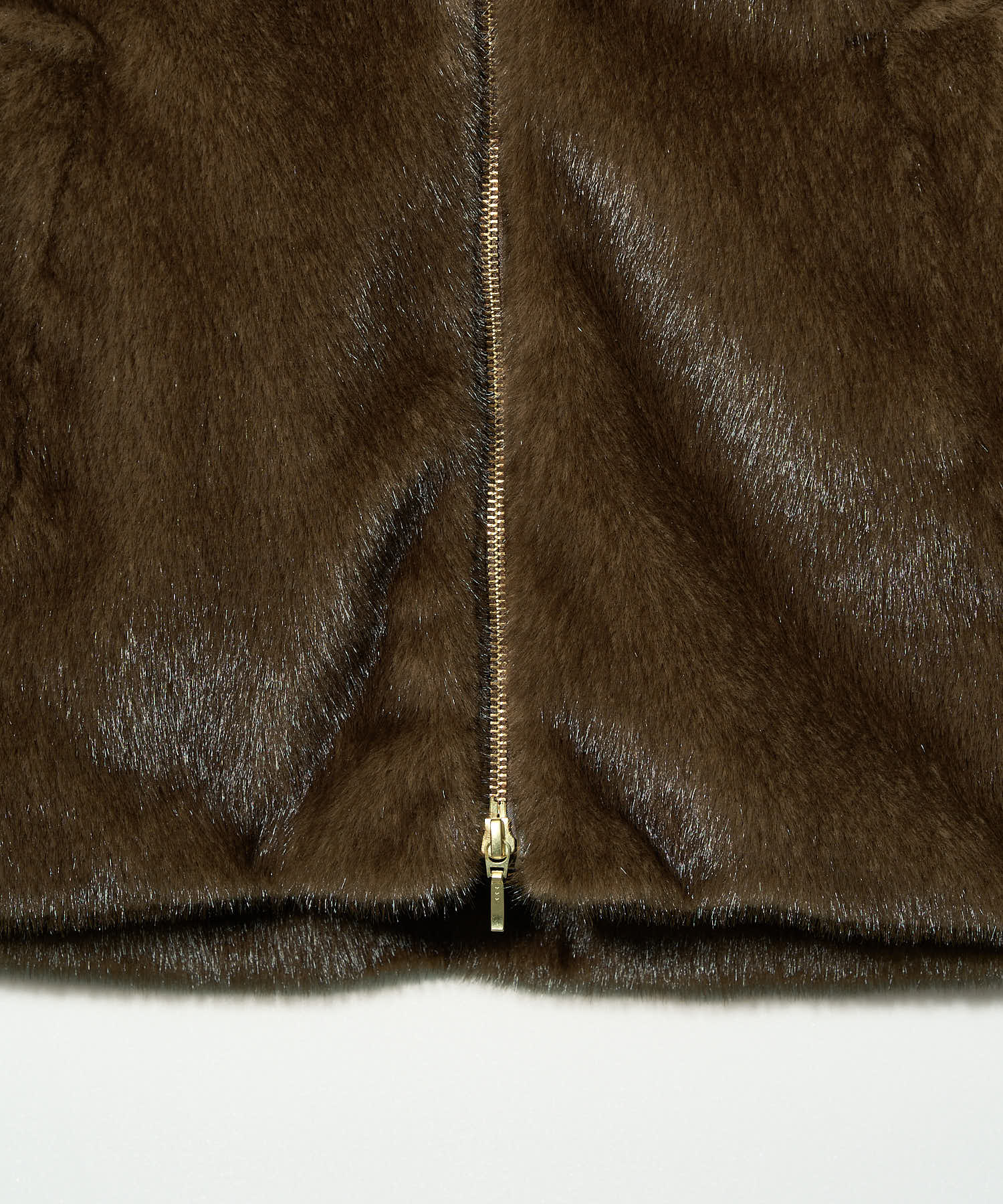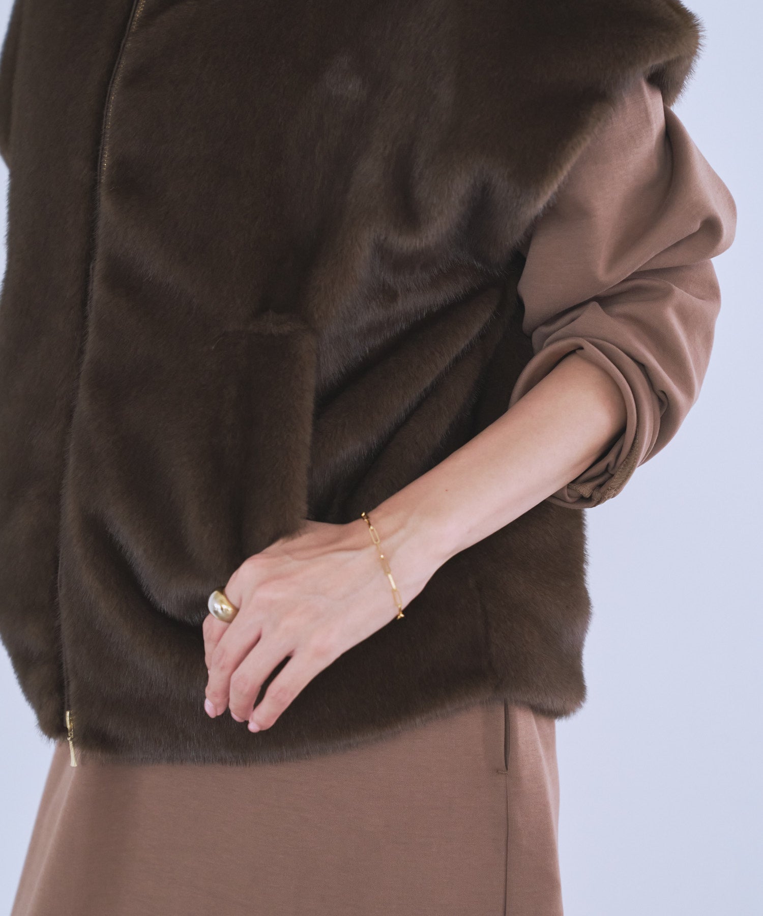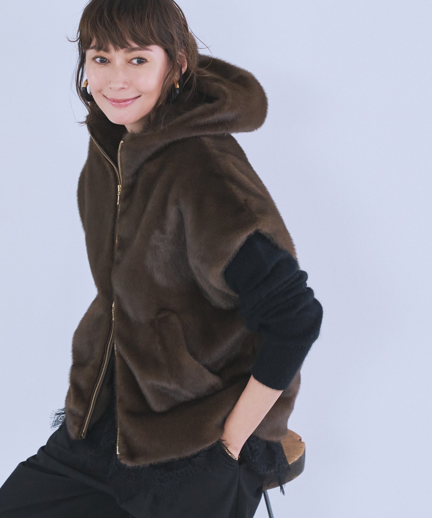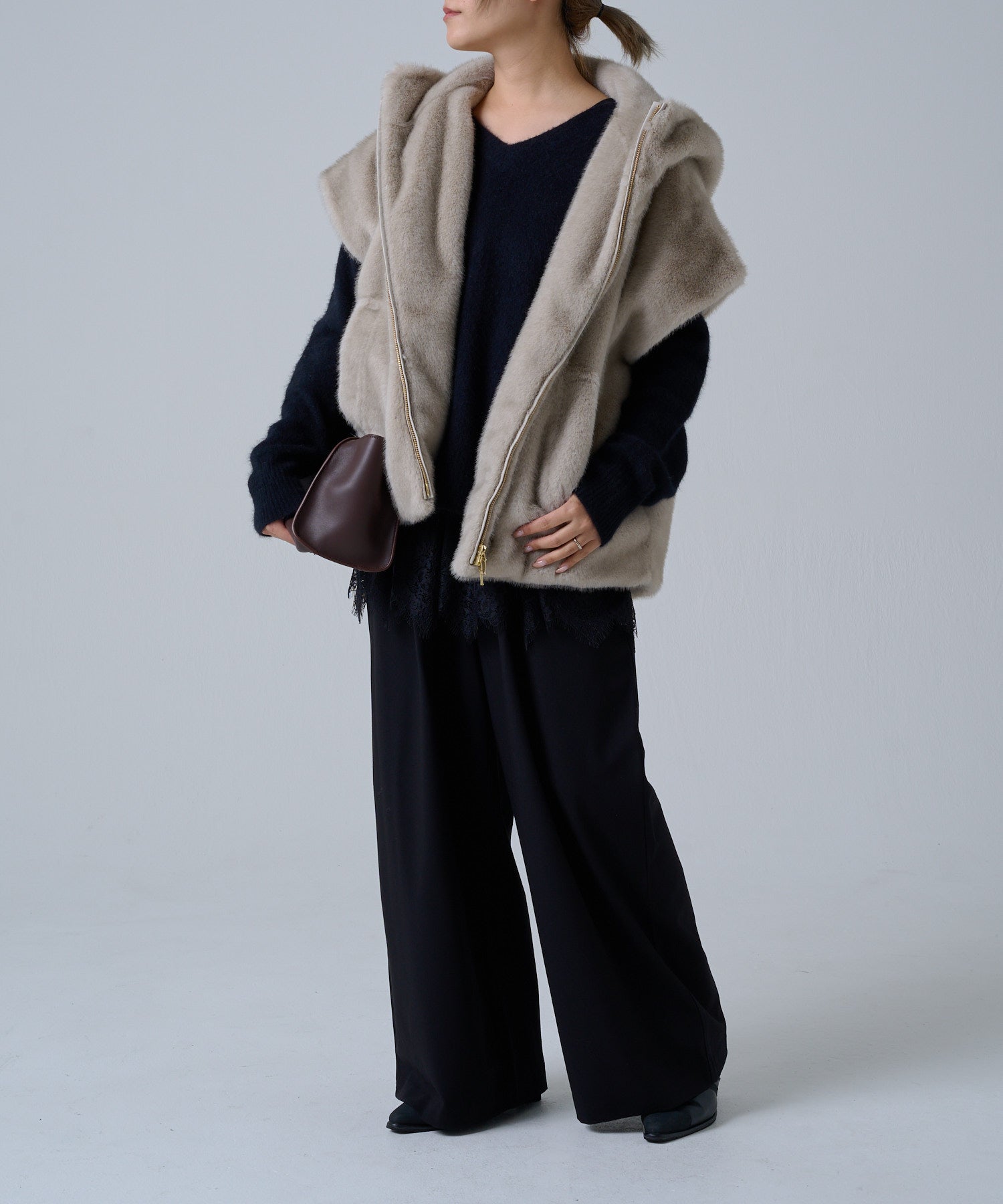 上質な艶感が魅力の《ミンクライクフードベスト》。