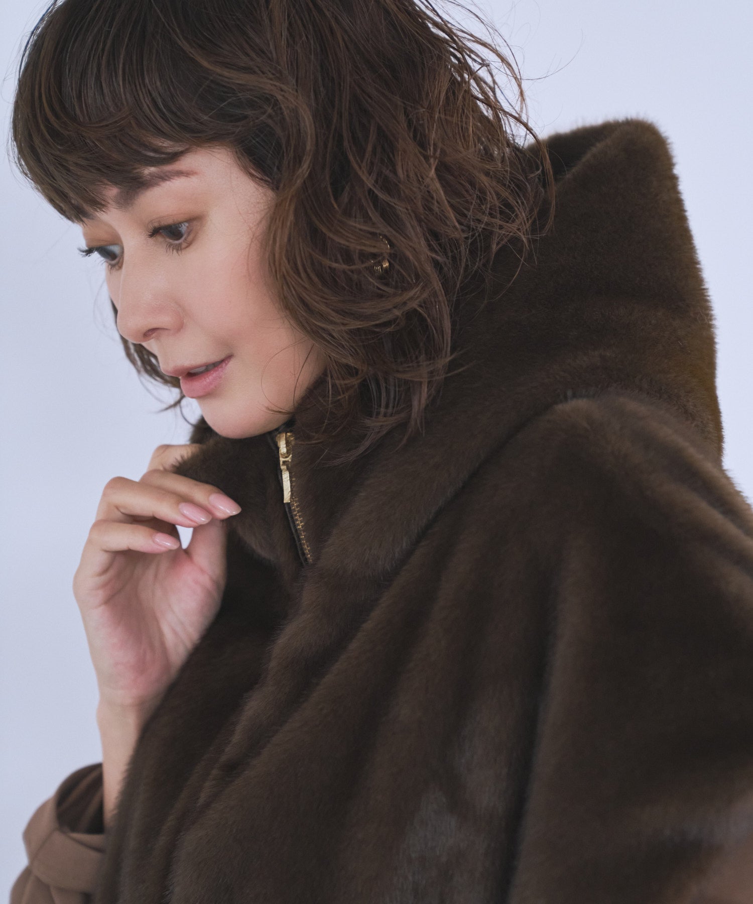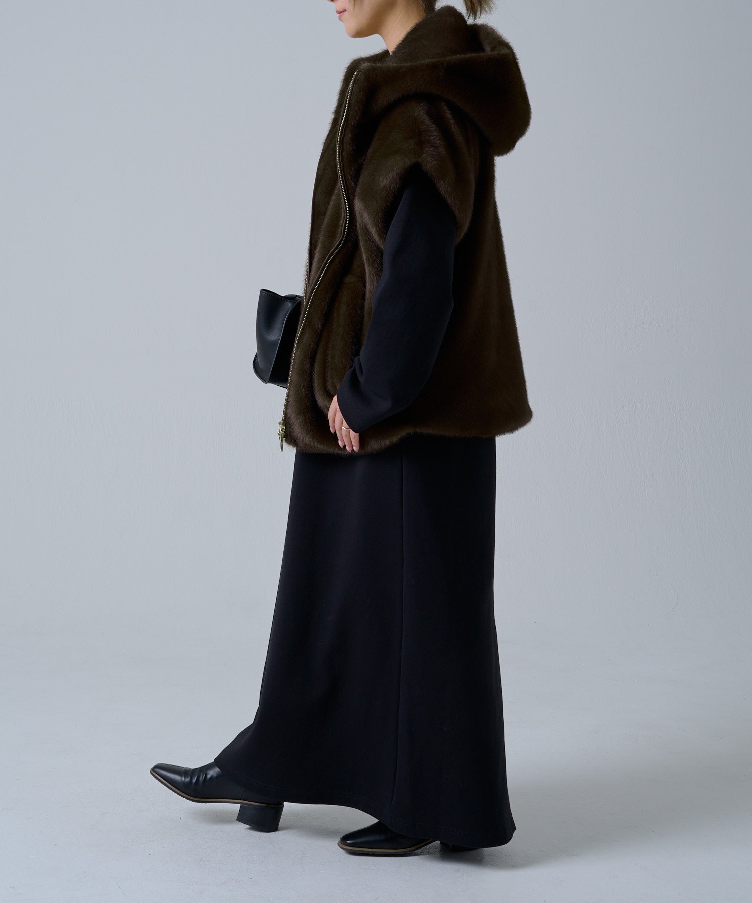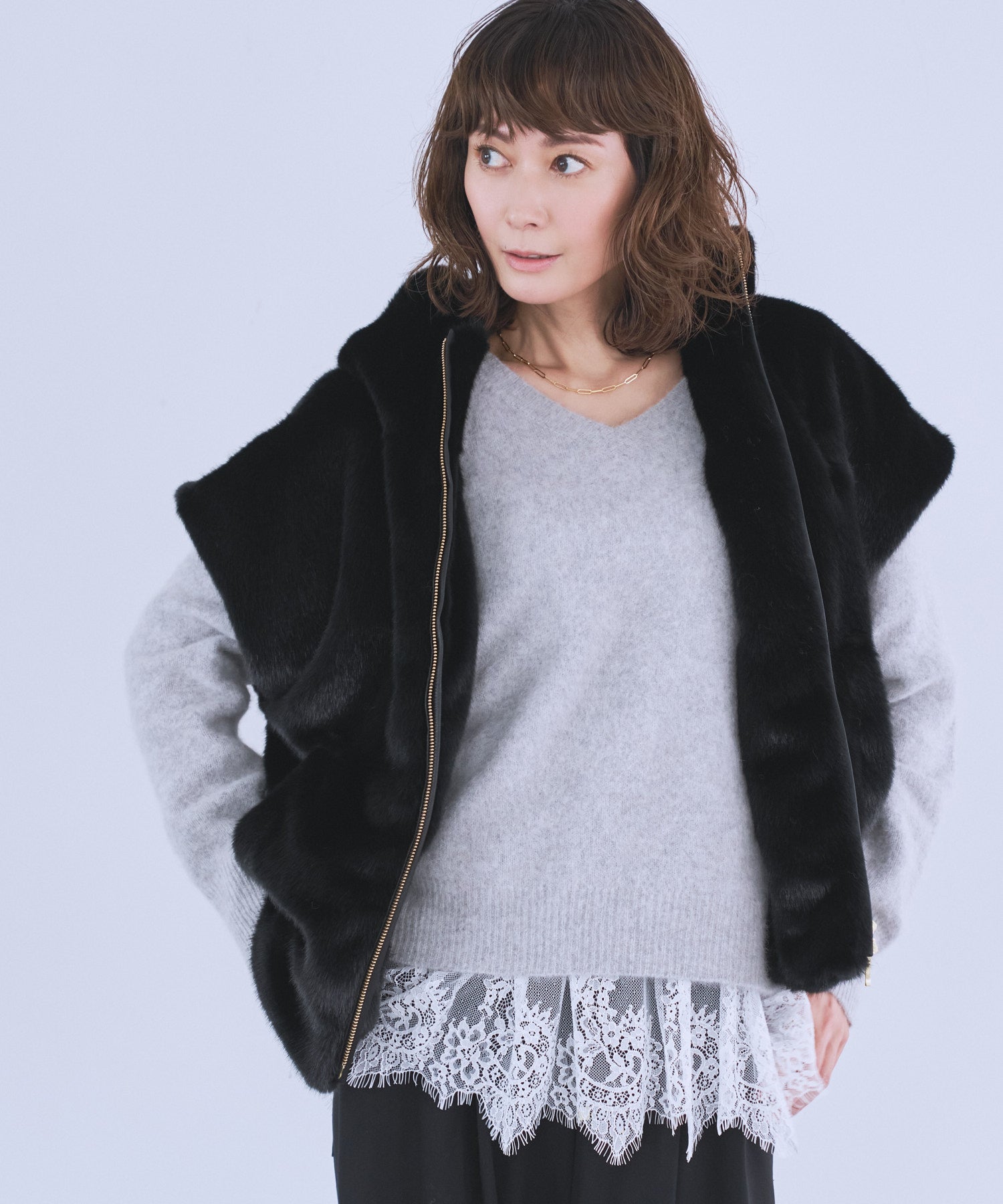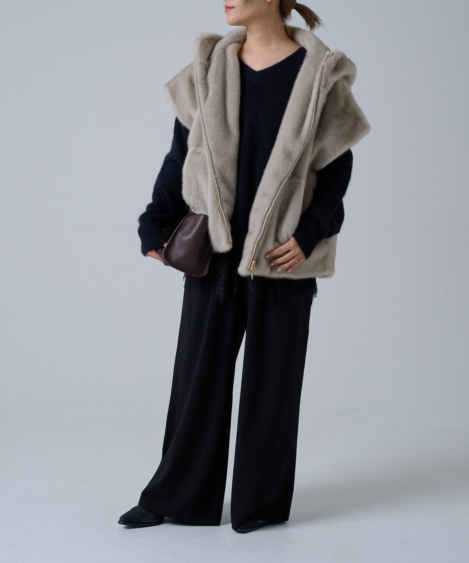 上質な艶感が魅力の《ミンクライクフードベスト》。