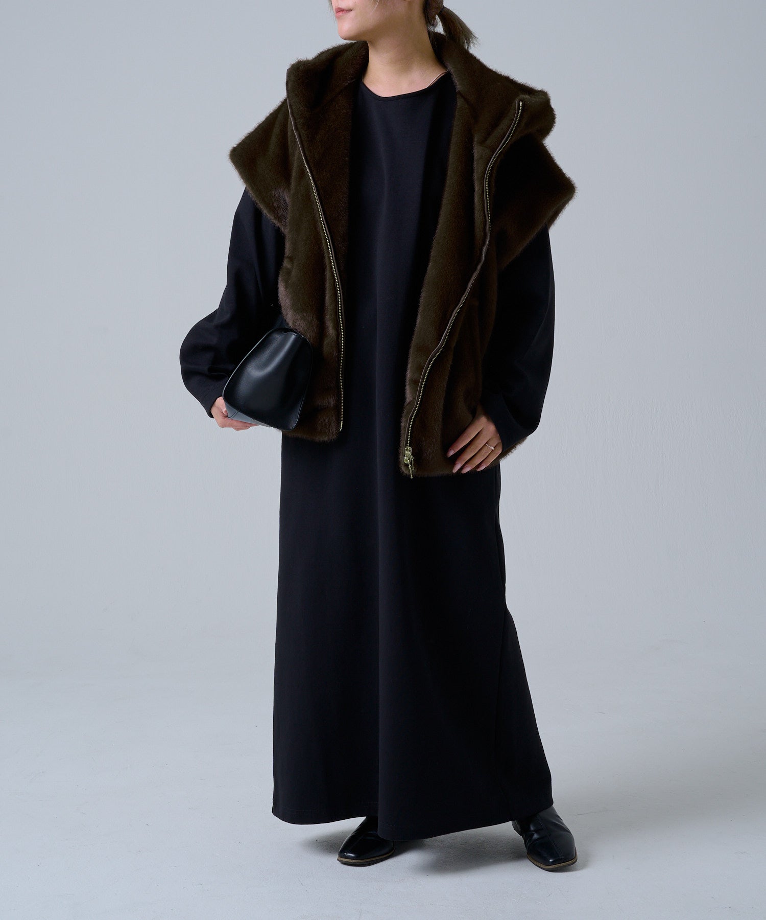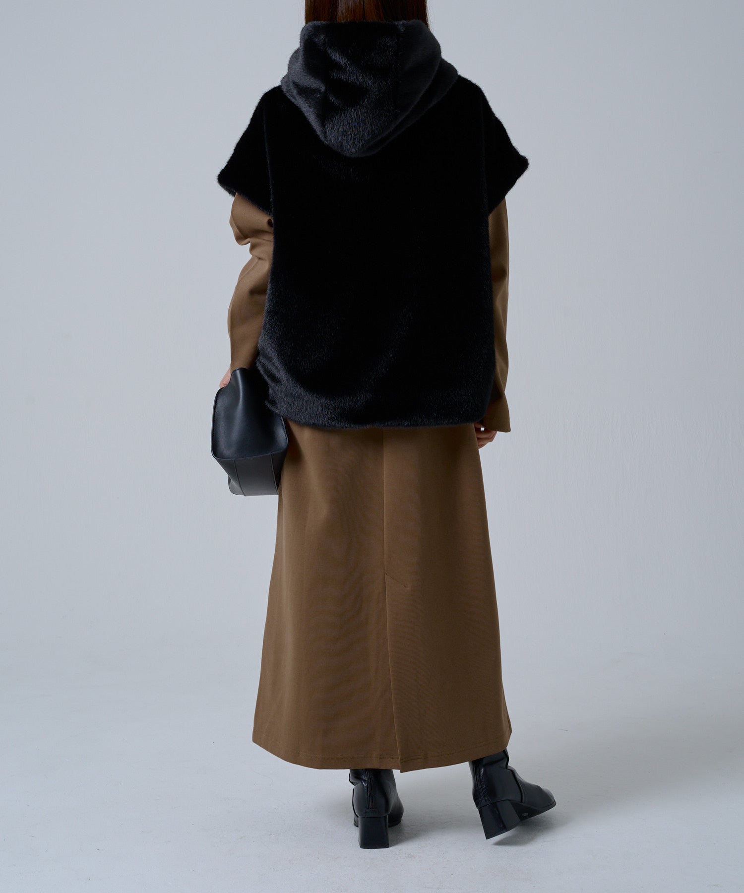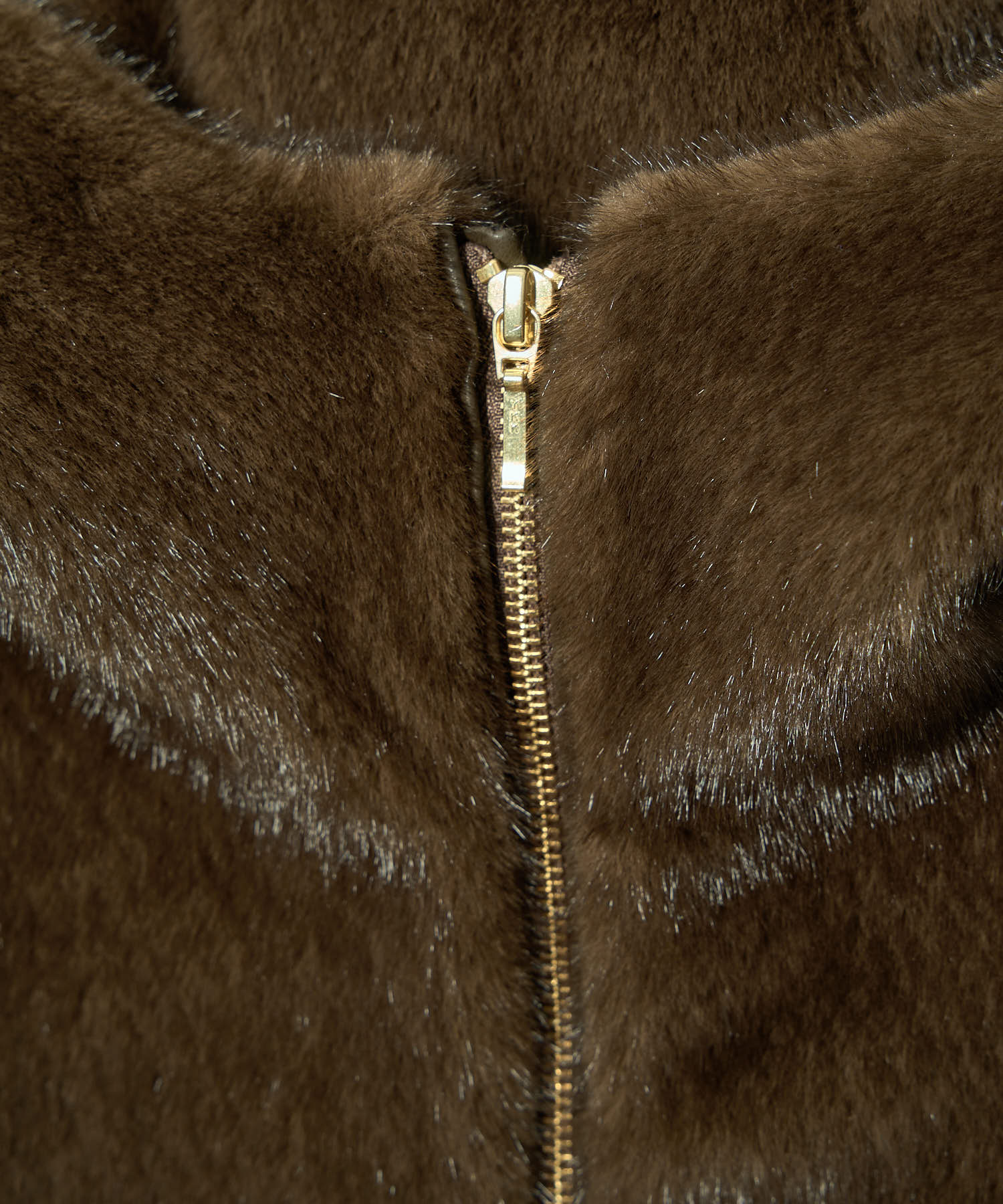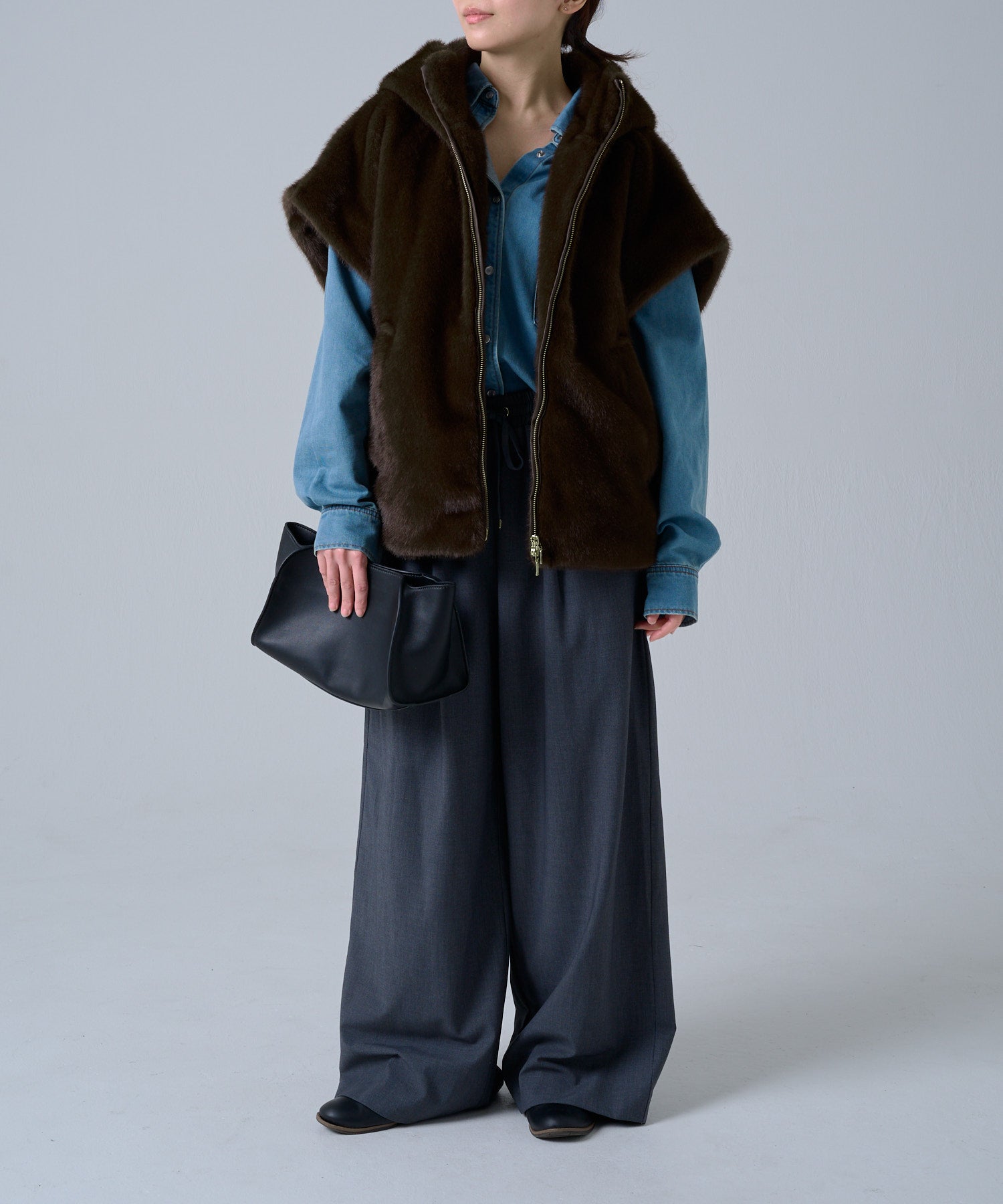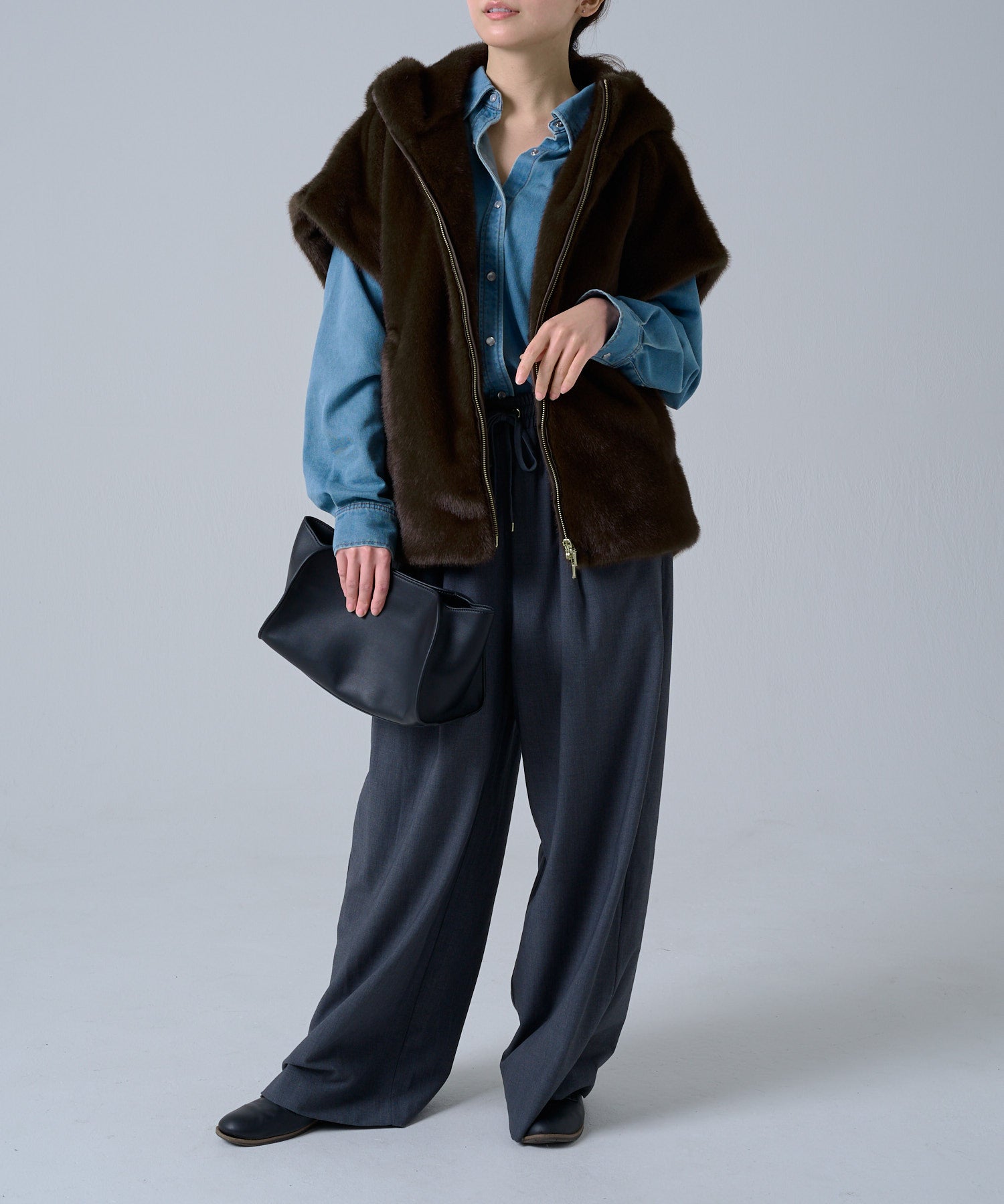 上質な艶感が魅力の《ミンクライクフードベスト》。