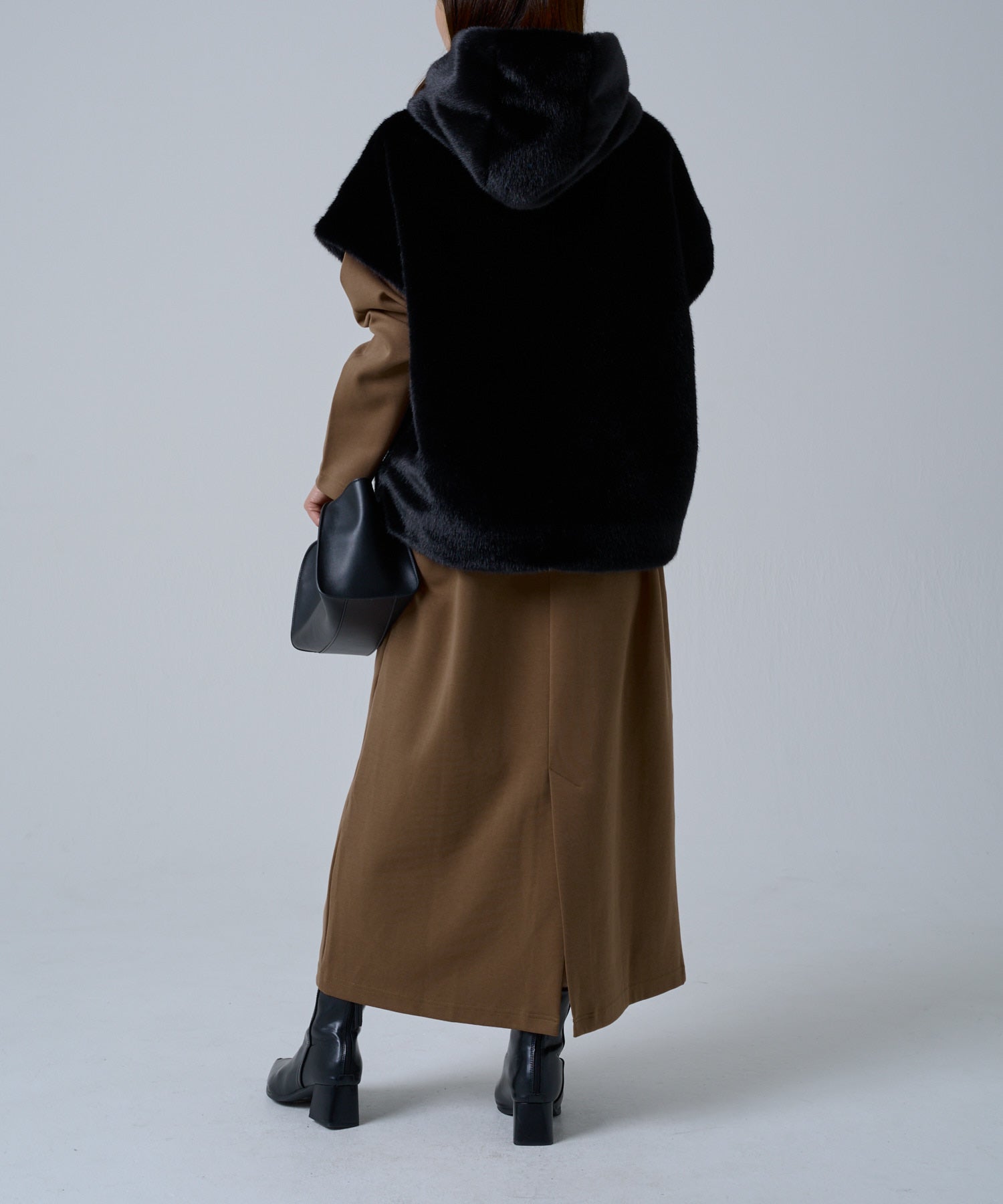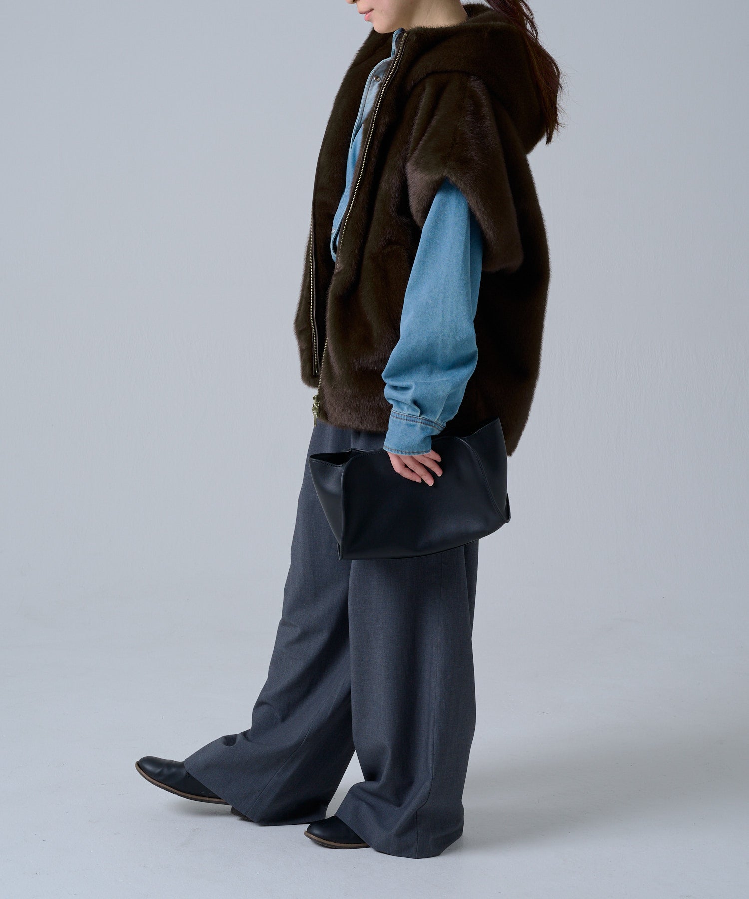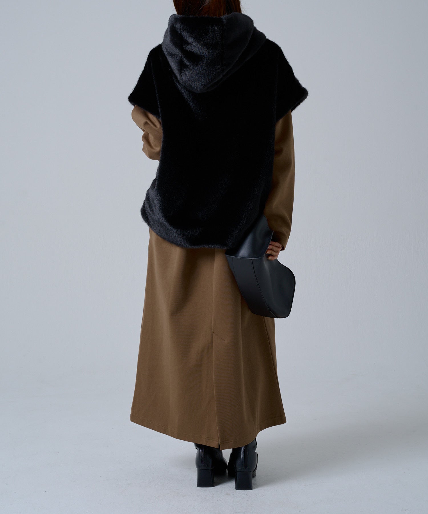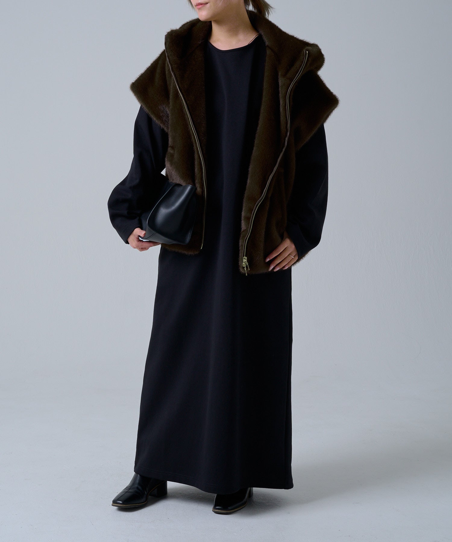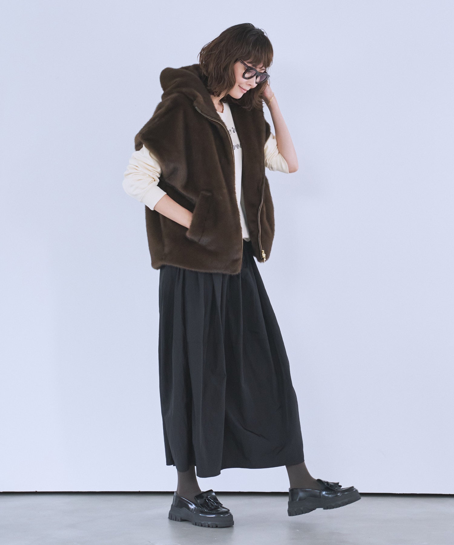 上質な艶感が魅力の《ミンクライクフードベスト》。
