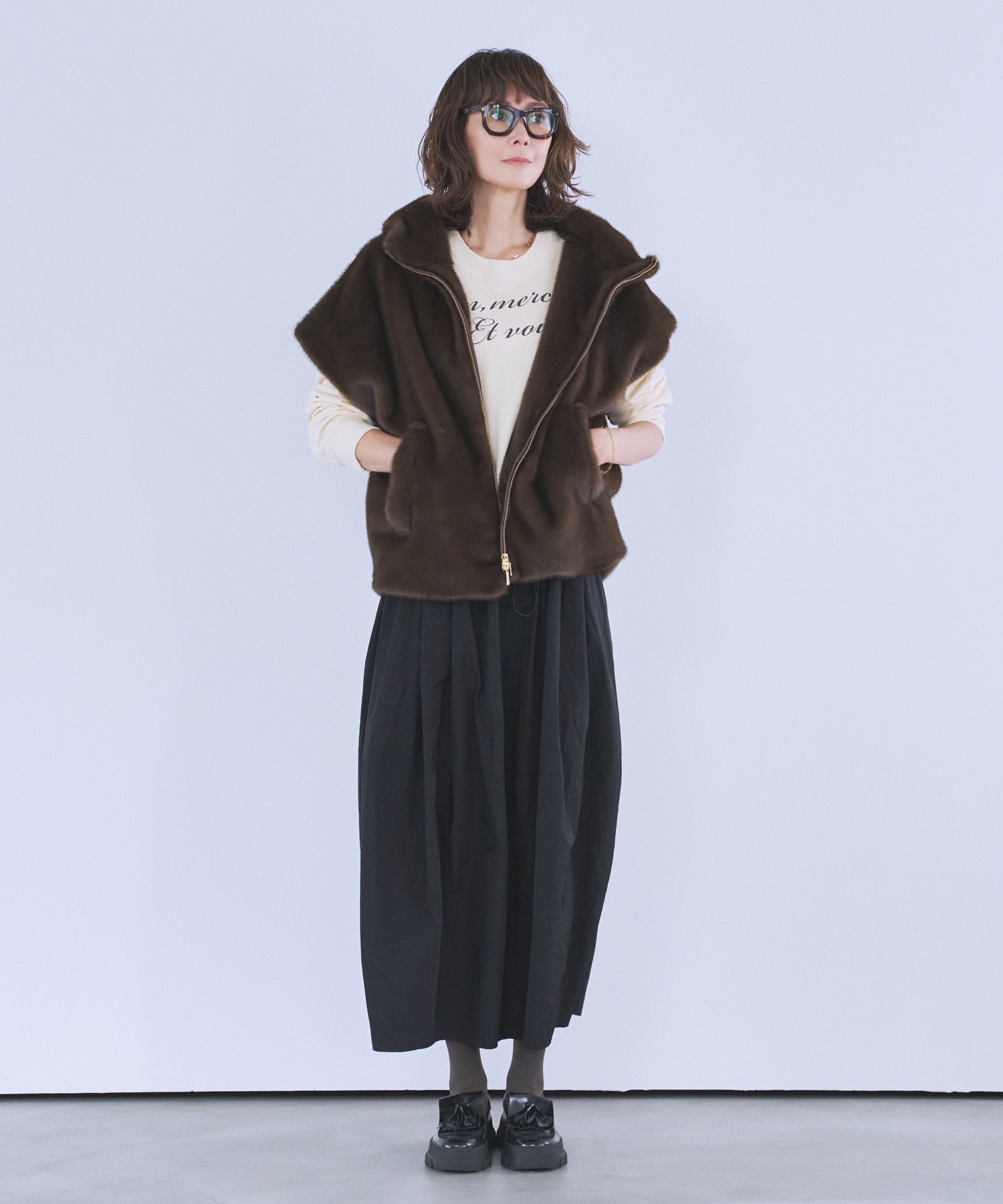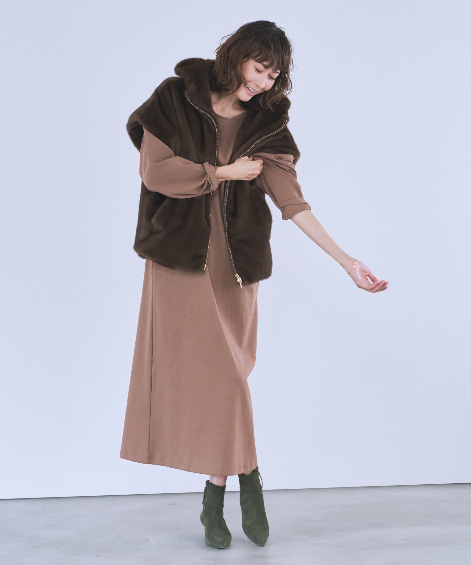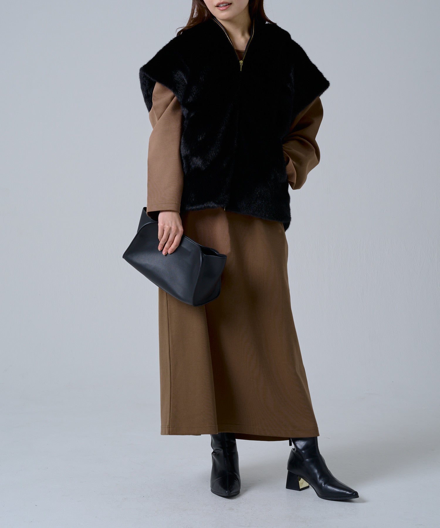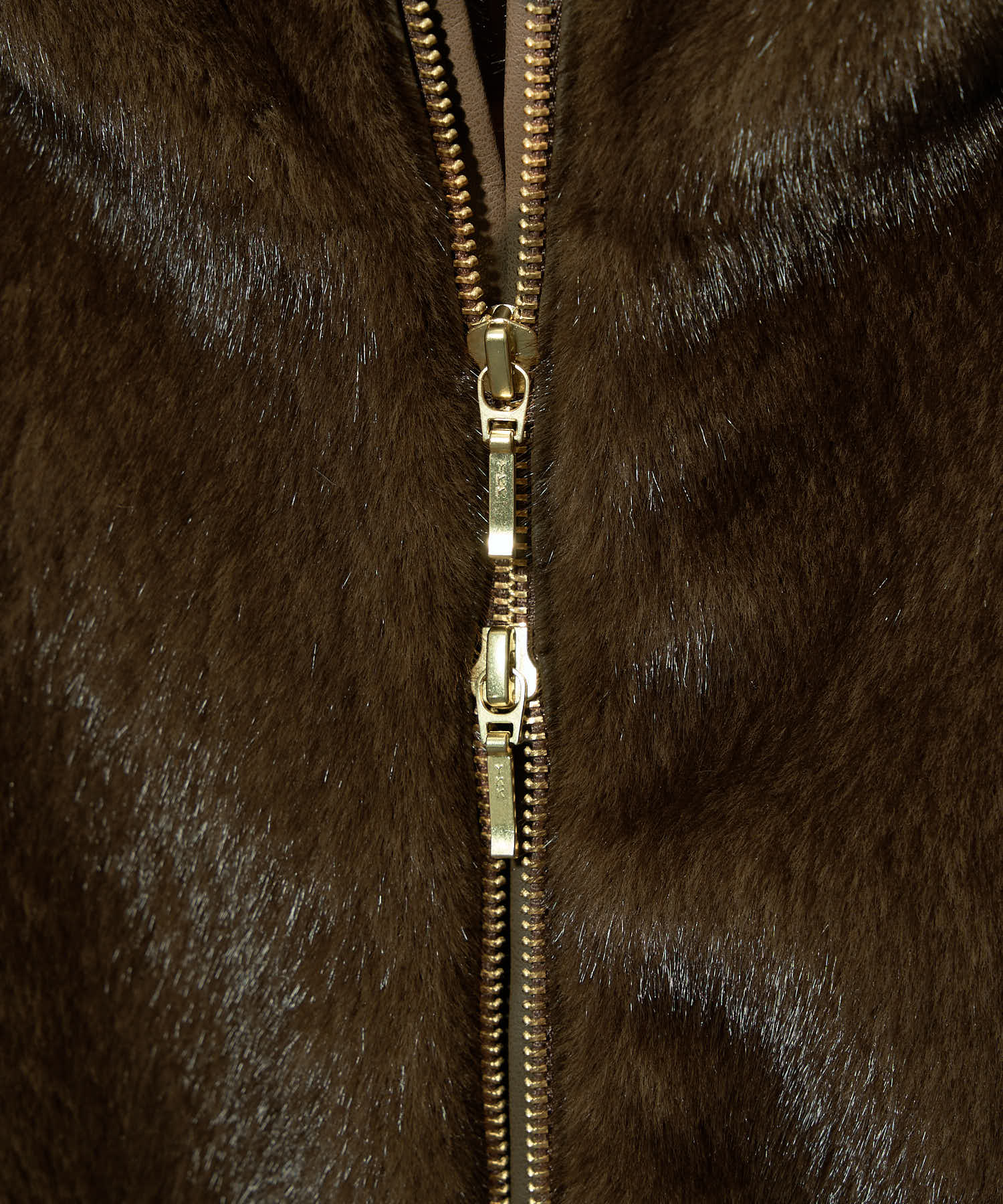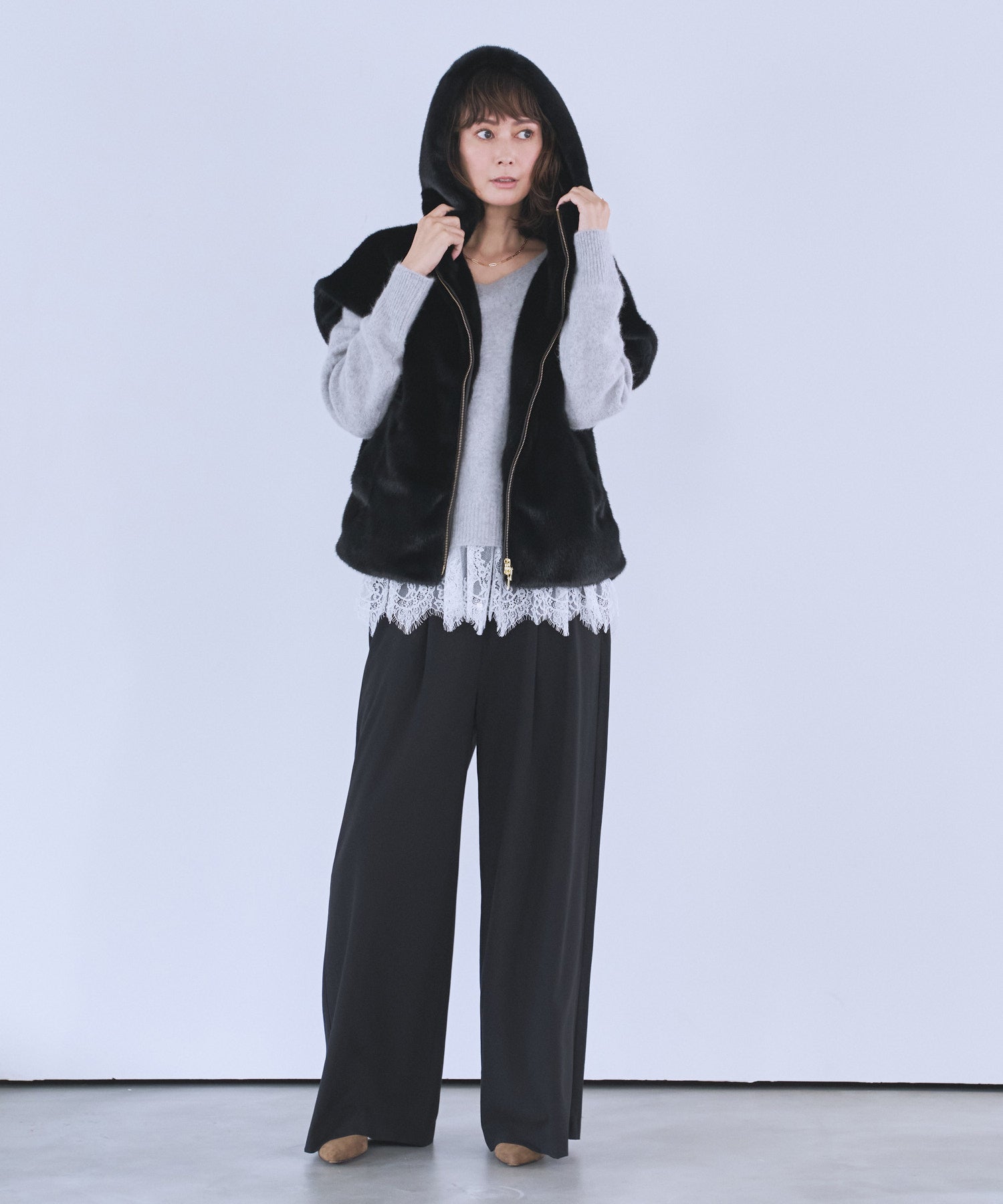 上質な艶感が魅力の《ミンクライクフードベスト》。