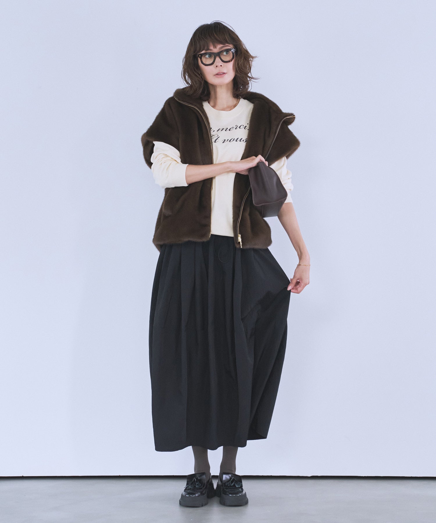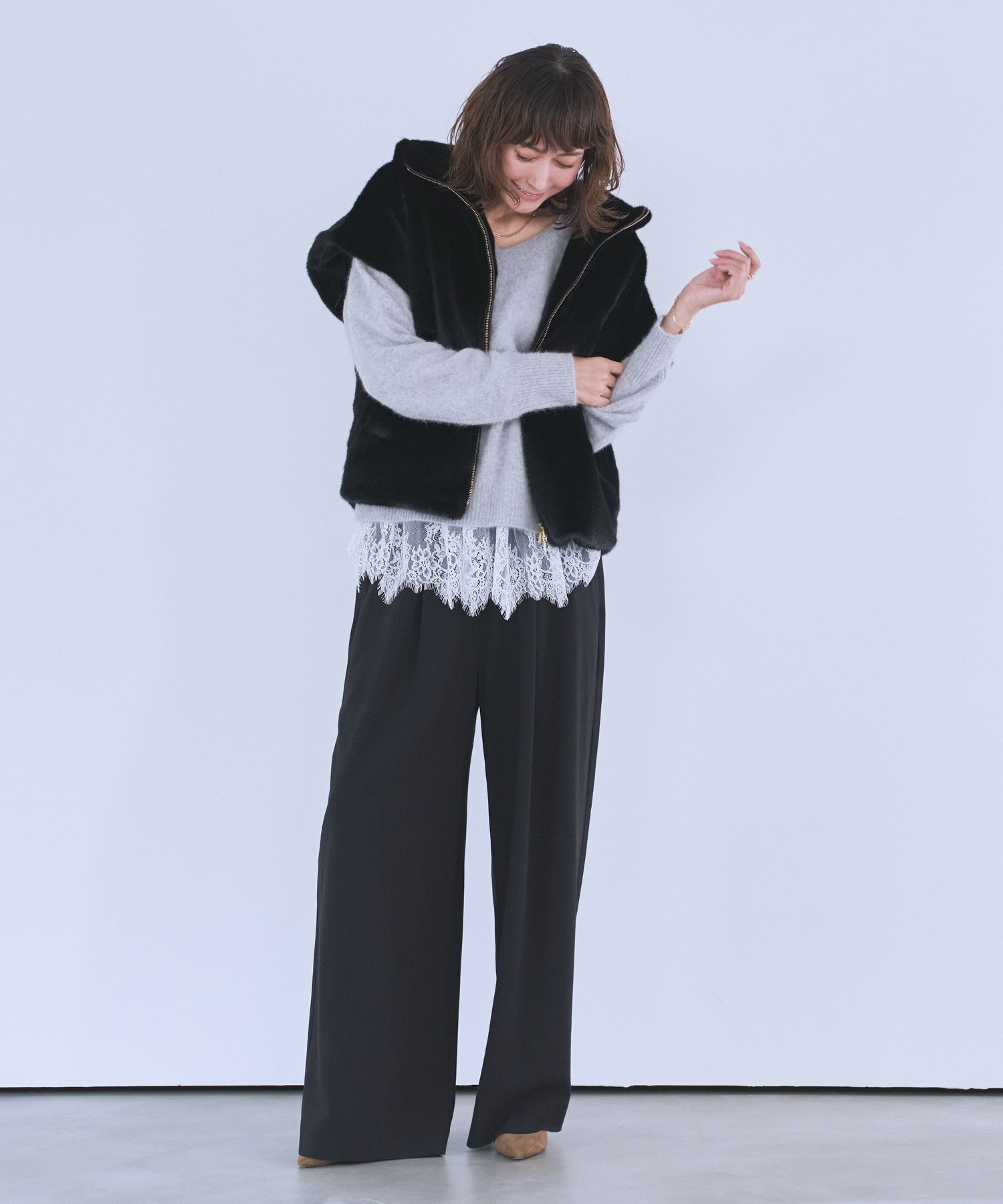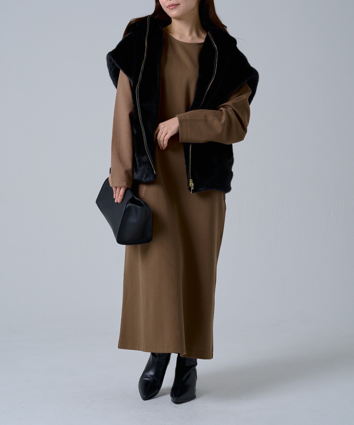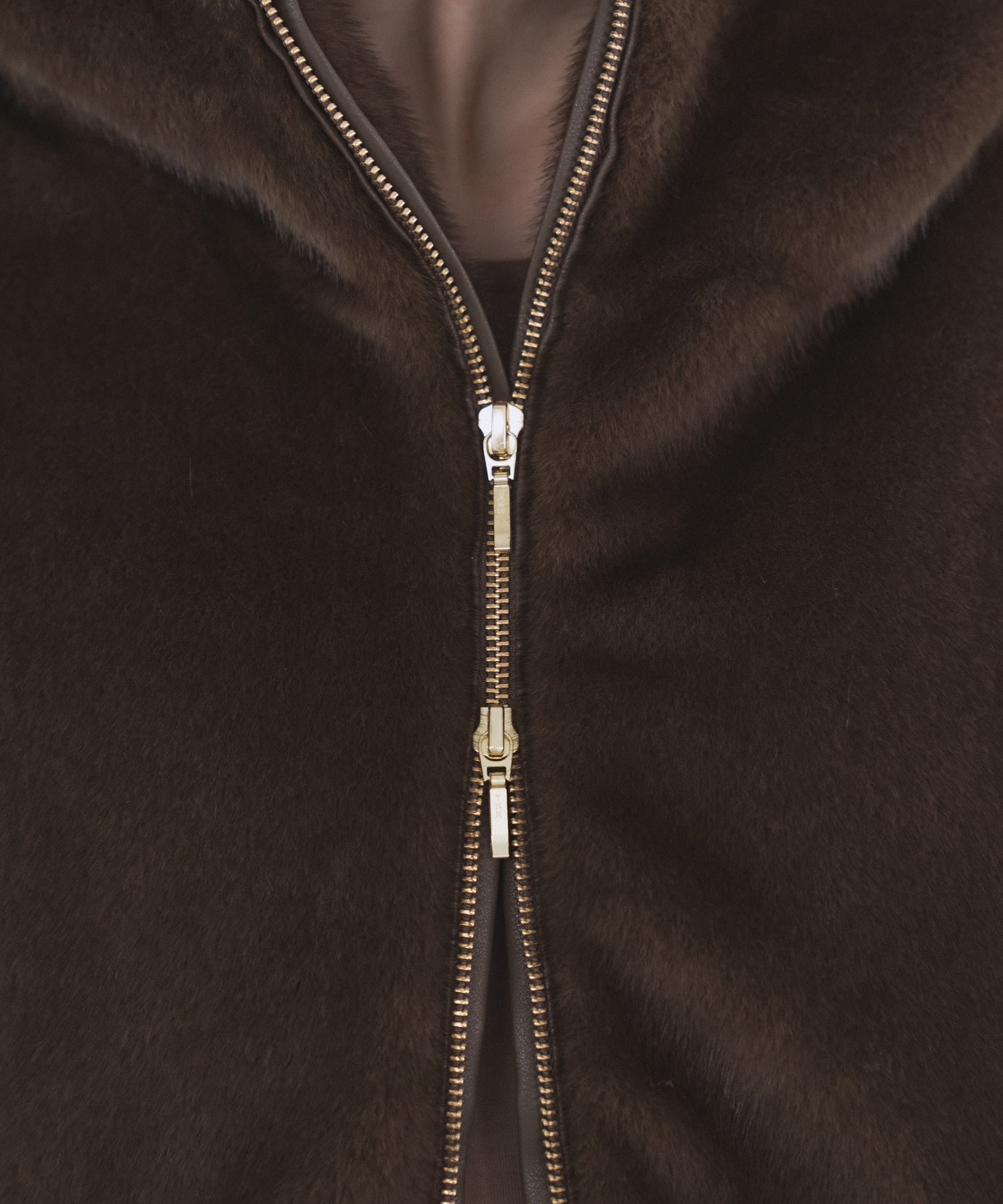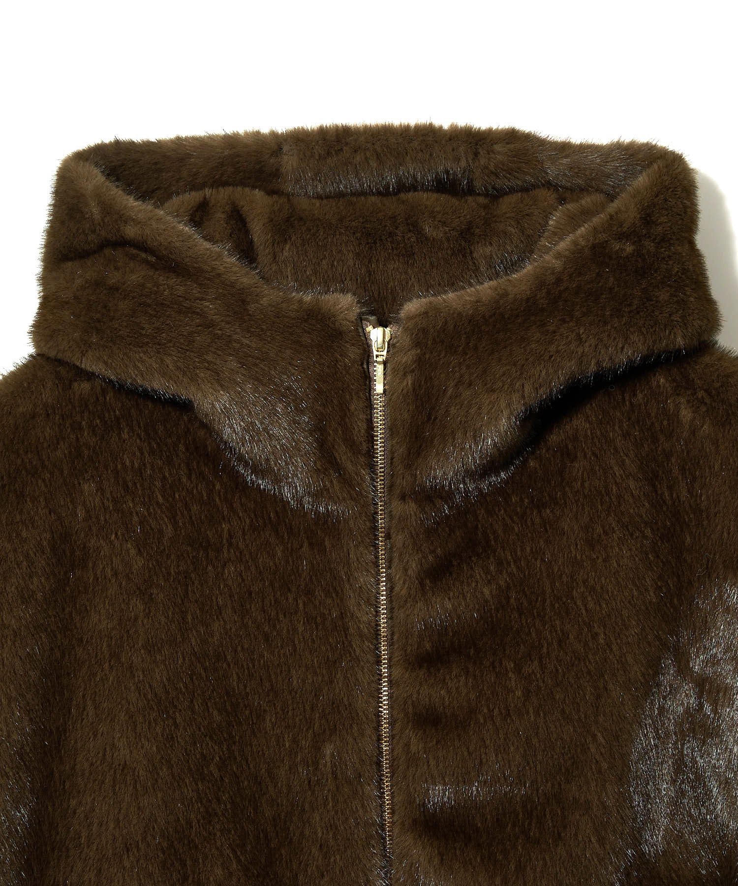 上質な艶感が魅力の《ミンクライクフードベスト》。