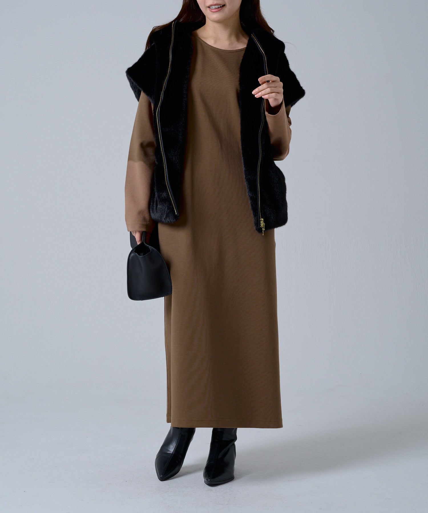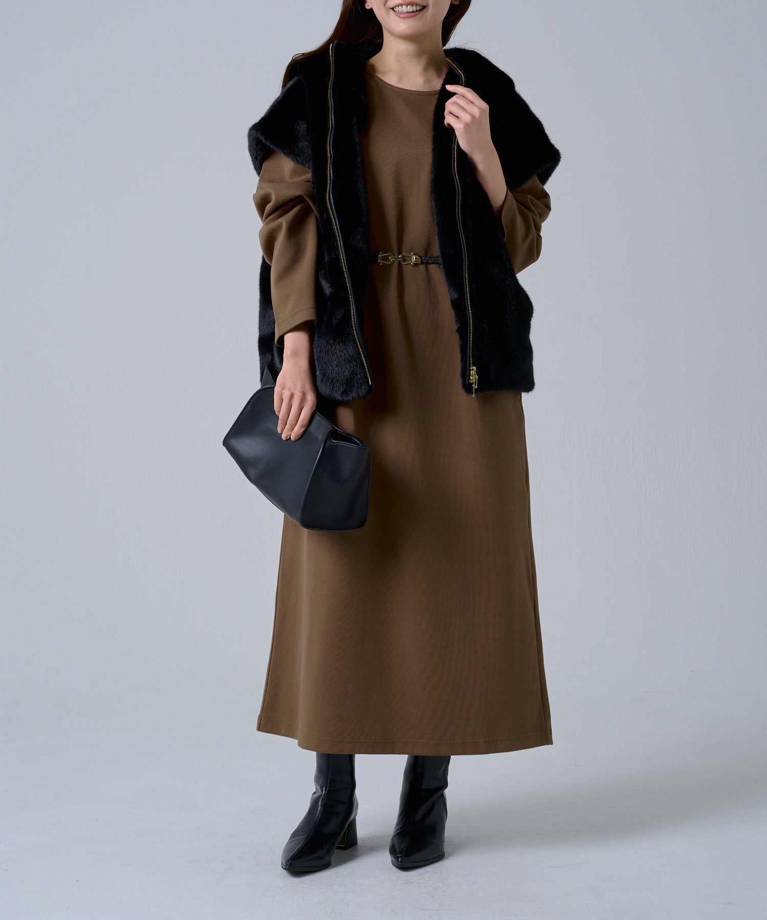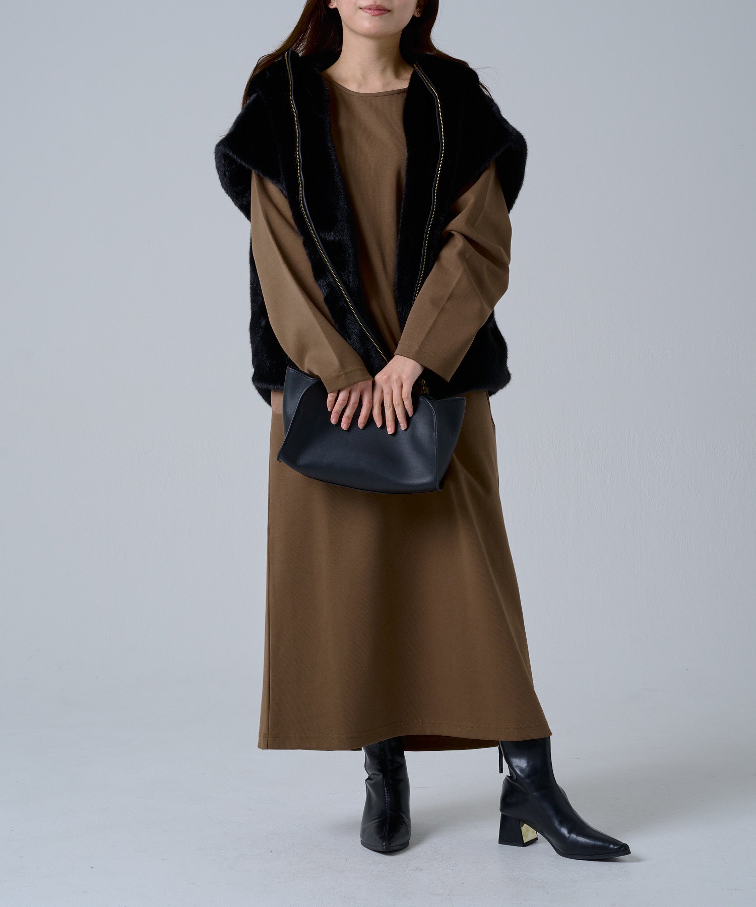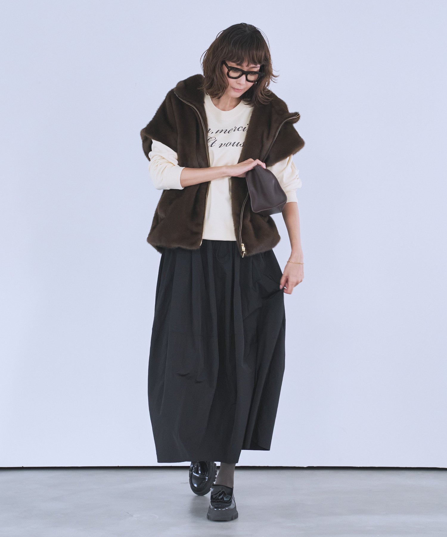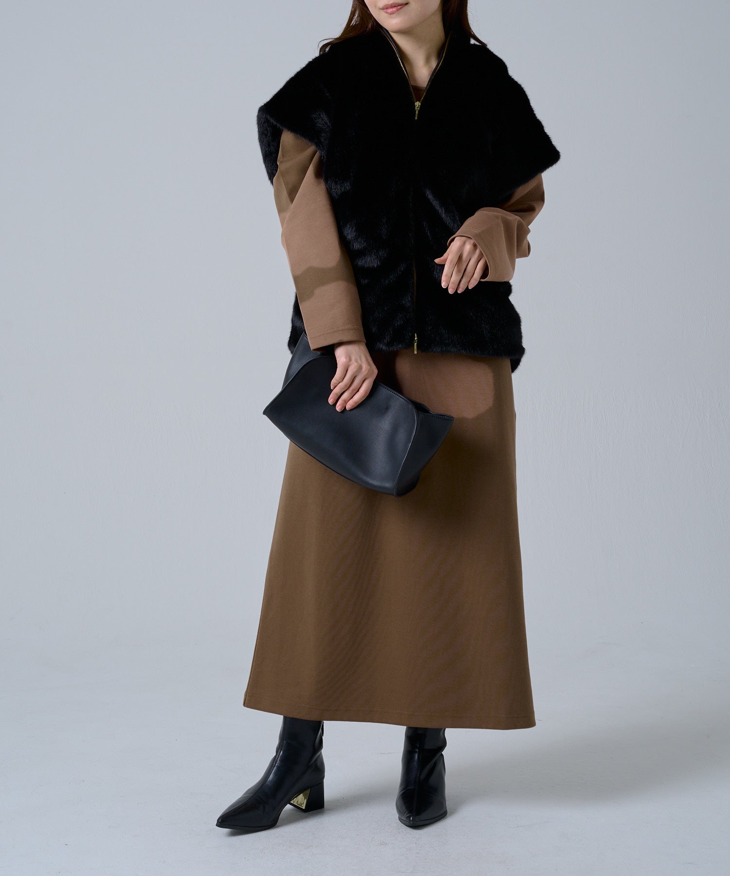 上質な艶感が魅力の《ミンクライクフードベスト》。