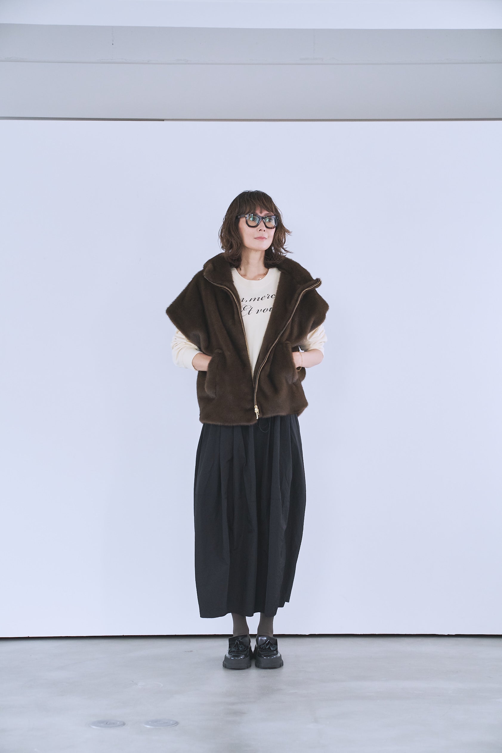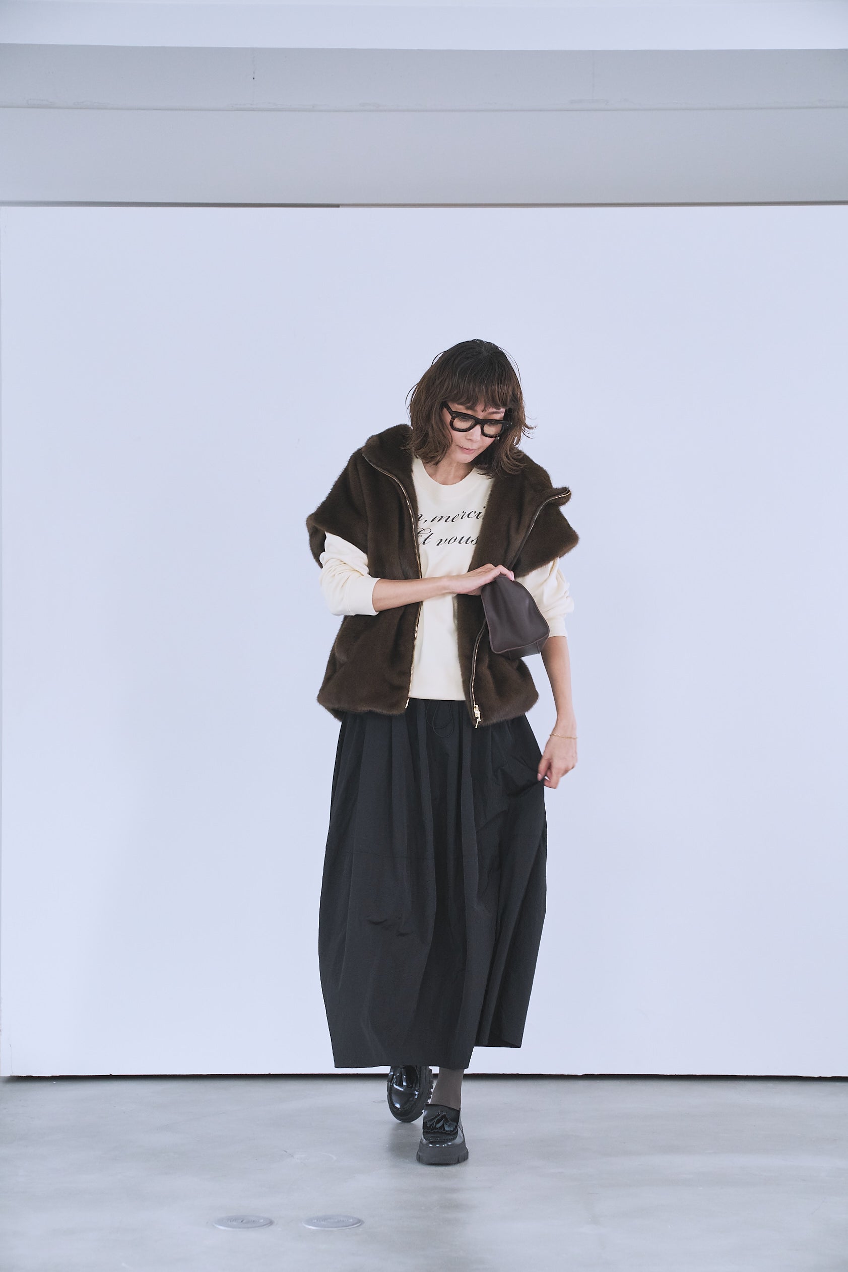 逆開ファスナー仕様で、開ける位置によってシルエットを調整でき、
