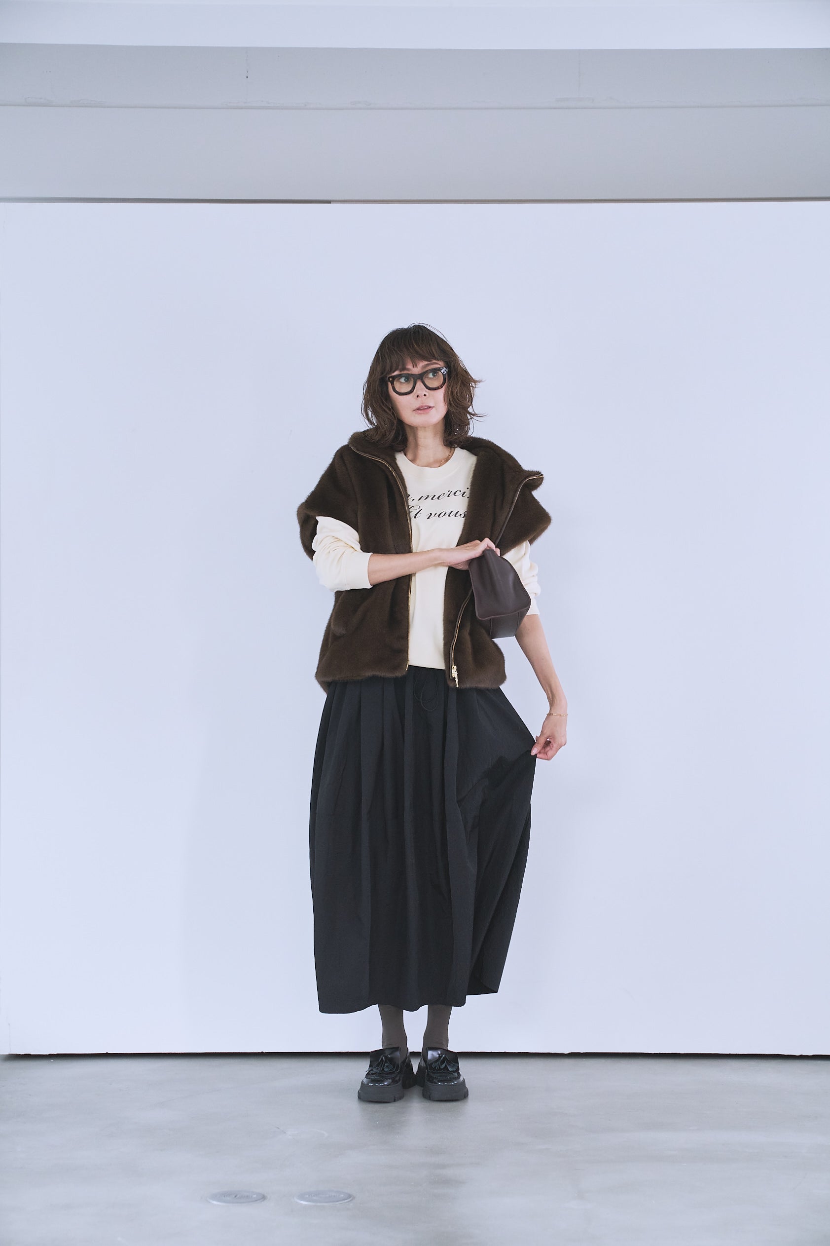 ゆったりとしたオーバーサイズシルエットで寒い時期はトレンチやブルゾンの上からのレイヤードもおすすめです。