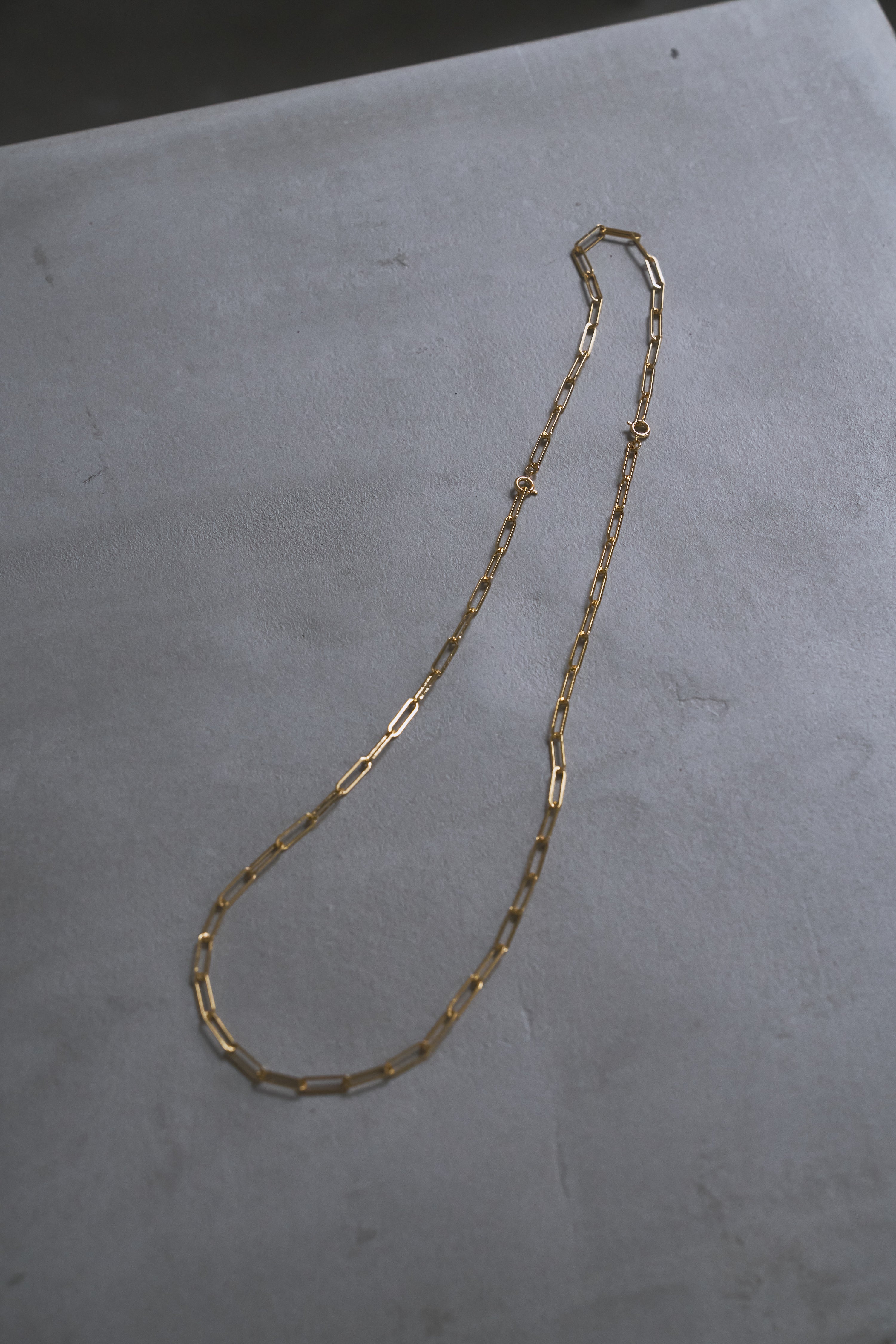 細身のオーバルチェーンを用いた 2WAY仕様のネックレス。程よいボリューム感を持ちながらも繊細な表情で、スタイリングに洗練されたアクセントを添えます。