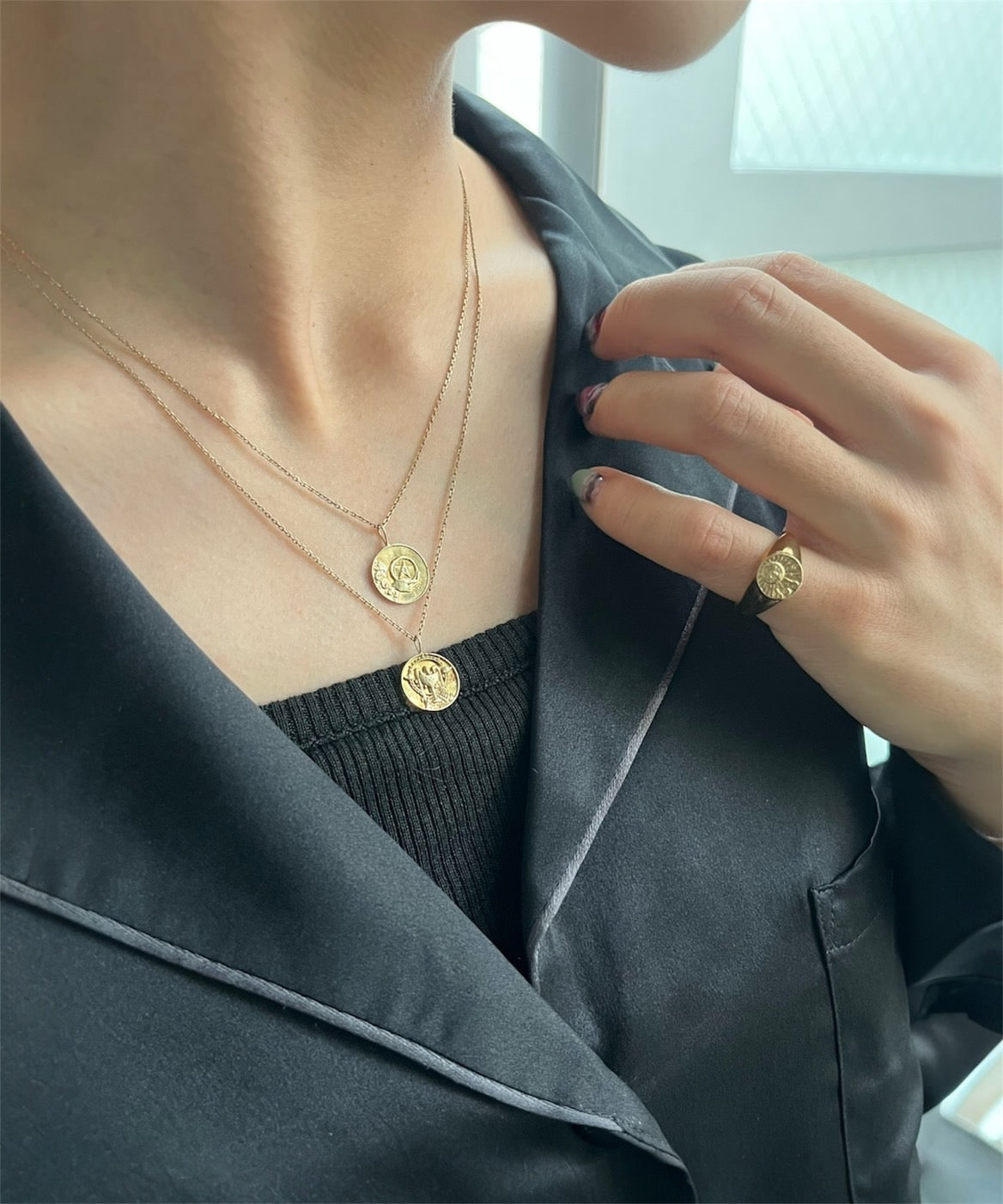 SV925に18Kプレーティングを施したネックレスは、凛とした輝きで、身に纏う人に確かな自信と力強さを与えます。